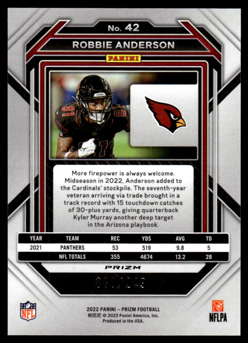 2022 Panini Prizm Orange Ice Robbie Anderson 060/249 Arizona Cardinals #42