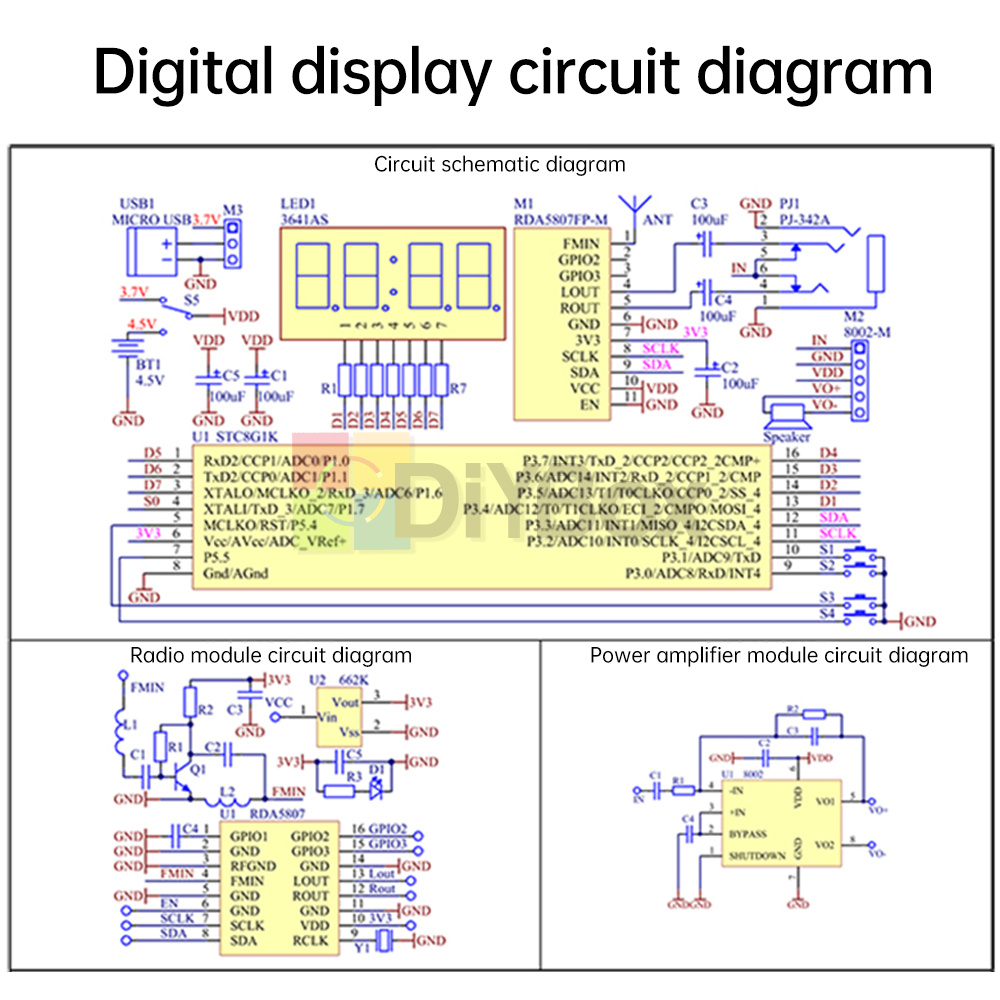 Control chip: RDA5807 8002D (STC81K17 digital display version)