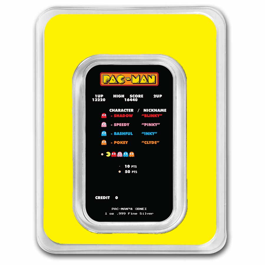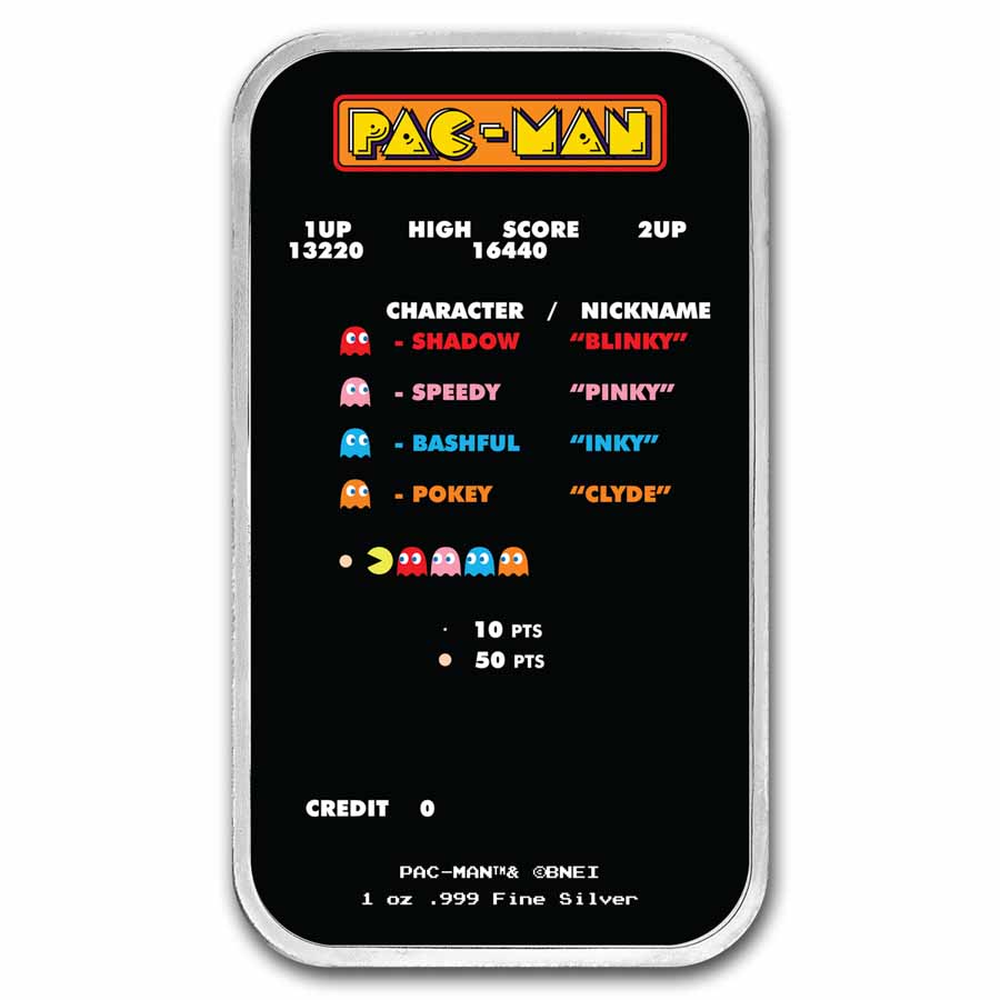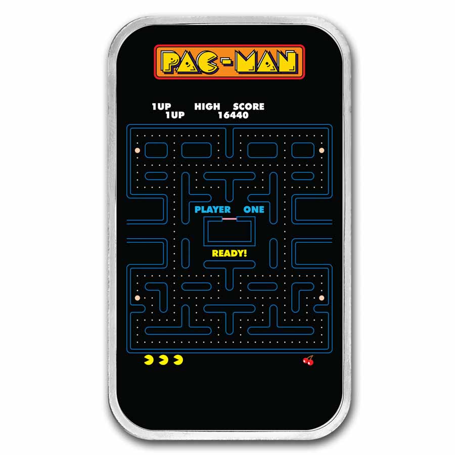Add this PAC-MAN Game Screen 1 oz Silver colorized bar to your cart today!