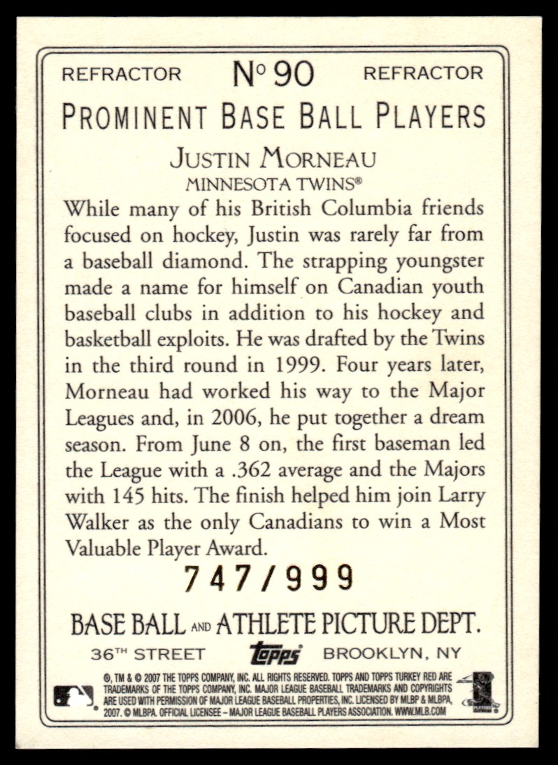 2007 Topps Turkey Red Chrome Refractors Justin Morneau 747/999 Minnesota Twins