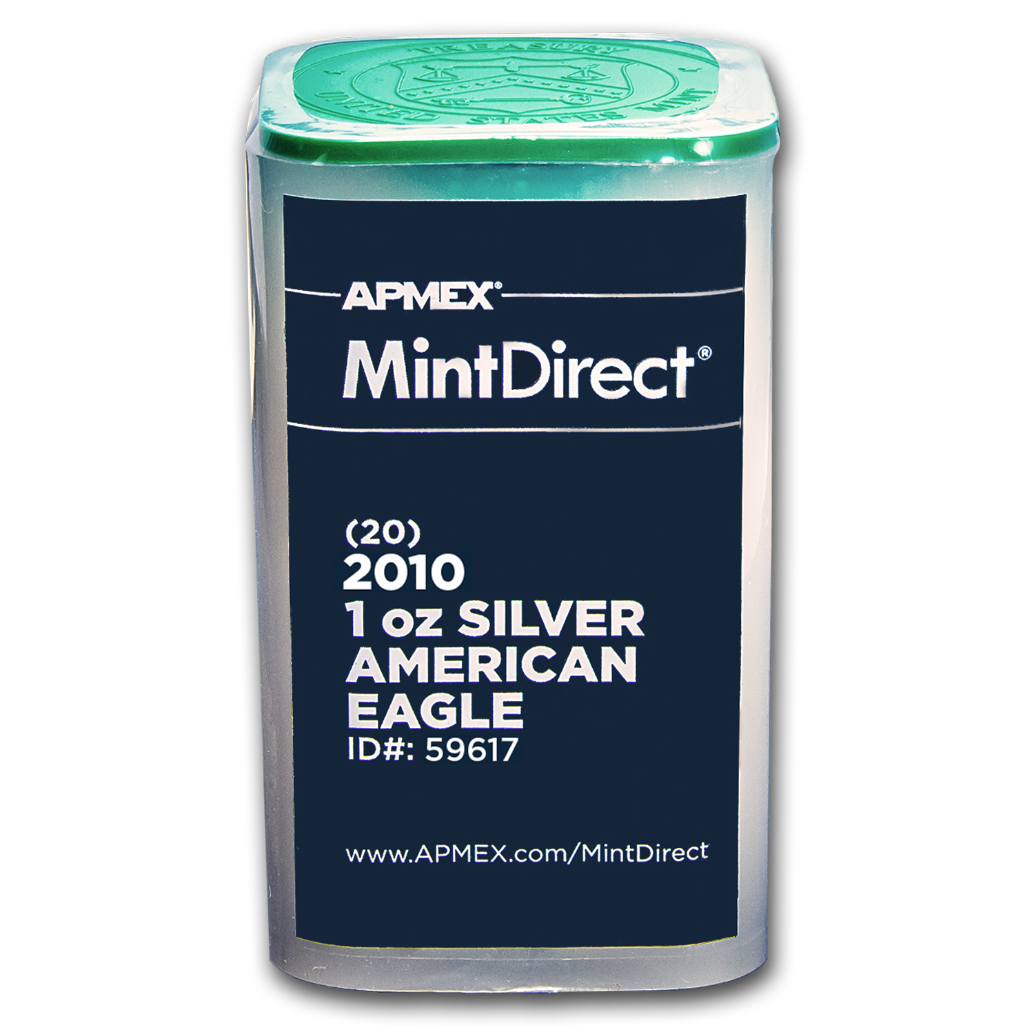 APMEX uses a special machine for this sealing process to ensure the products you receive are sealed completely once they are removed directly from the mint boxes. The mint tubes are placed on the conveyor leading into the machine and the sealing process seals both ends of each tube with tamper-evident packaging. After the process is completed, the tube is removed from the machine and then checked to ensure the quality of the packaging meets our exacting standards. You now have a finished tube of MintDirect® 2010 1 oz Silver American Eagle coins. These tubes are then packaged in a sturdy, stackable APMEX Mini Monster Box and secured for shipping.