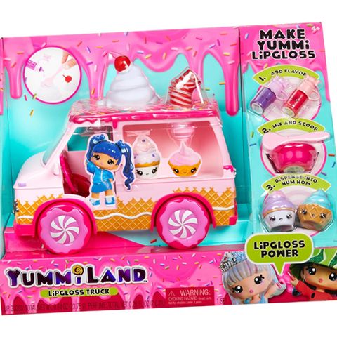 Welcome to Yummiland, where six brave Yummis team up to protect their incredible, edible city with magical lip gloss superpowers! Play along with the Yummiland Lip Gloss Truck that includes everything you need to create your very own lip gloss! Mix your custom gloss right inside your truck's whipped cream top, then place it in the straw to dispense right into your Num Nom container. Your small Yummiland dolls fit in the front seat for even more Yummiland play! (Dolls sold separately). Kids will love creating their own lip gloss right inside the Yummiland Lip Gloss Truck while following alongside their favorite Yummiland characters from the animated series. This special playset includes a Lip Gloss Truck + 2 exclusive Num Noms + 2 DIY lip gloss kits (color, scent, clear cream base and mixing tools). This playset inspires creativity and imagination. *Yummiland Dolls sold separately