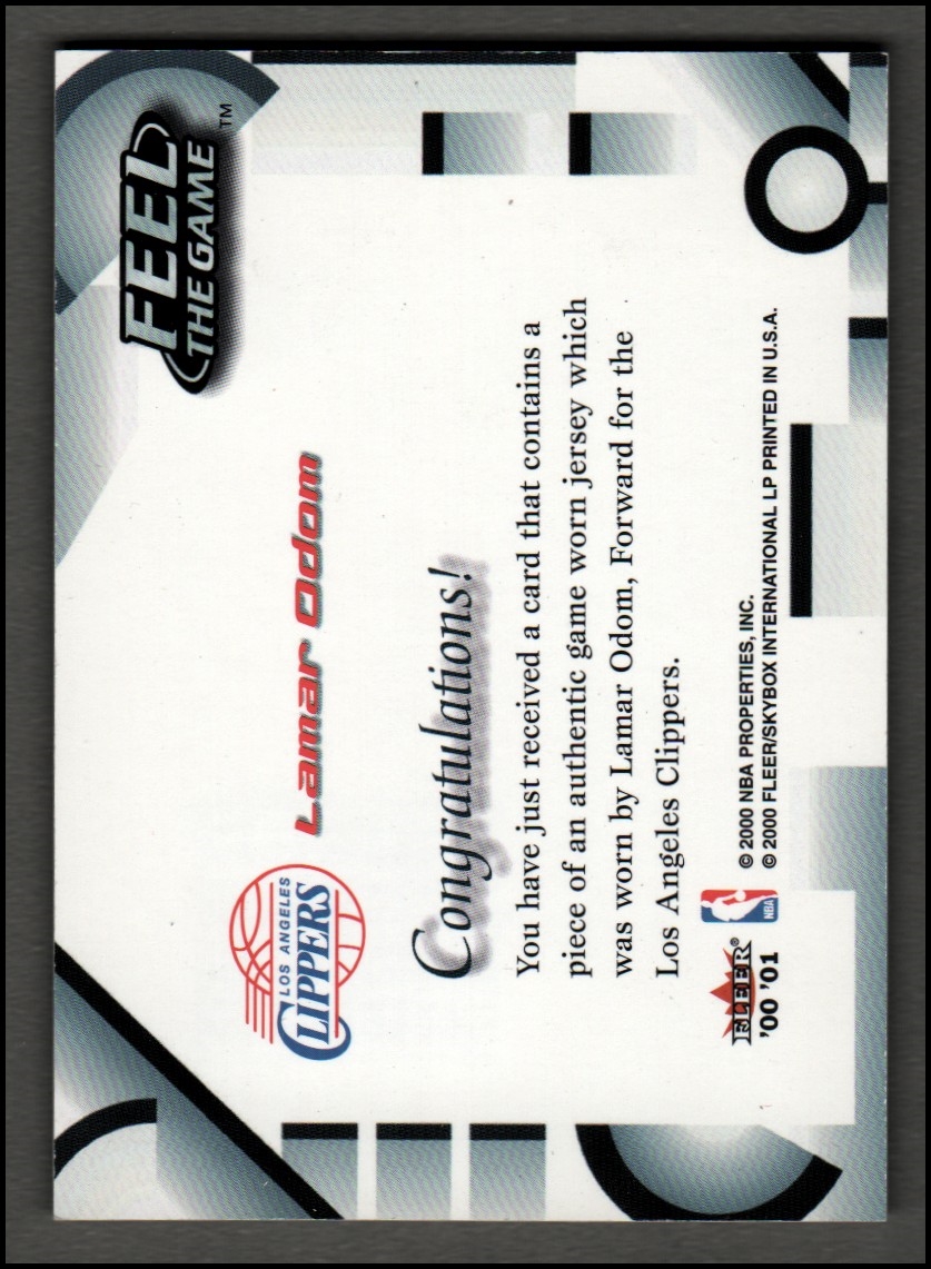 2000-01 Fleer Feel the Game #24B Lamar Odom Red Jersey - NM-MT