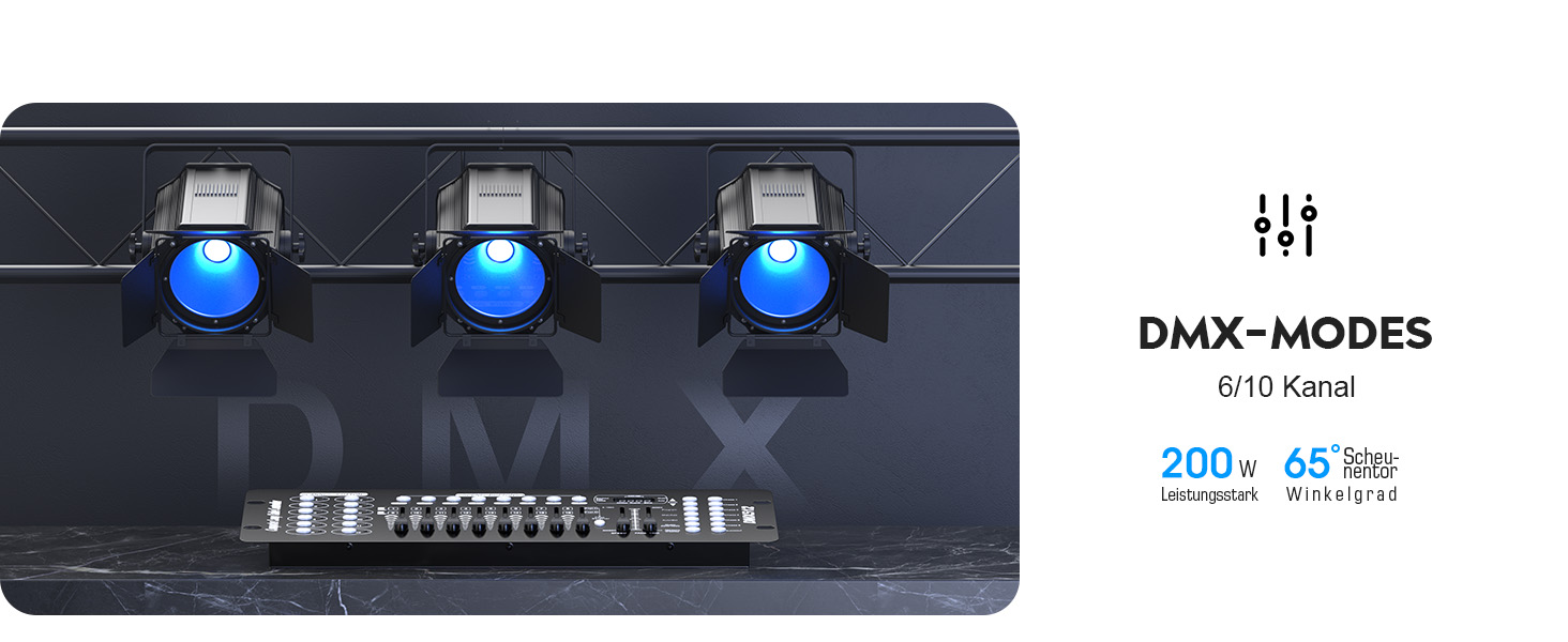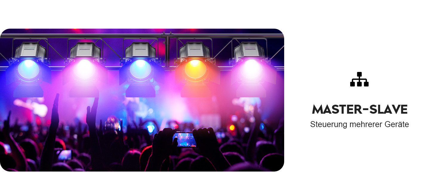 Betriebsmodus: automatisch, Sprachsteuerung, DMX, Master-Slave-Modus, Fernbedienung