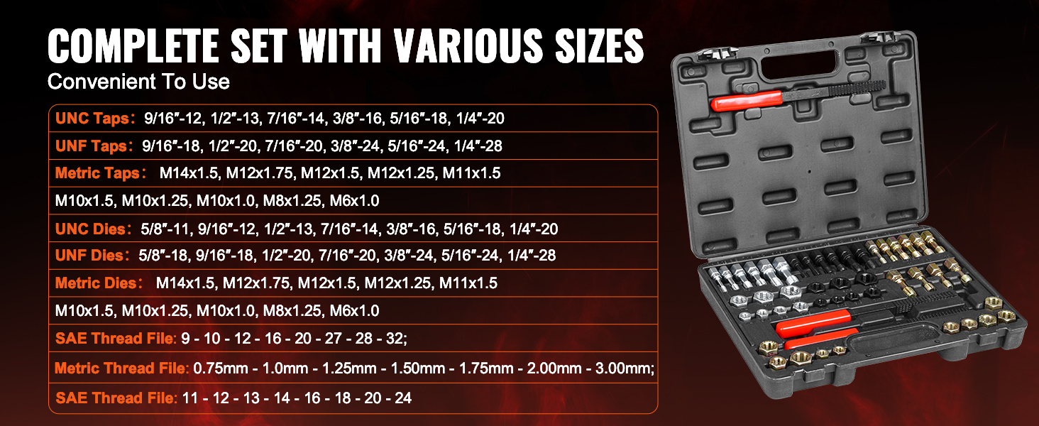 This thread chaser set is an all-in-one solution with various sizes to restore stripped or damaged internal threads. Practical and portable, it's built to last. Delivering excellent results after multiple uses, it boosts maintenance efficiency, making it essential for repair professionals.