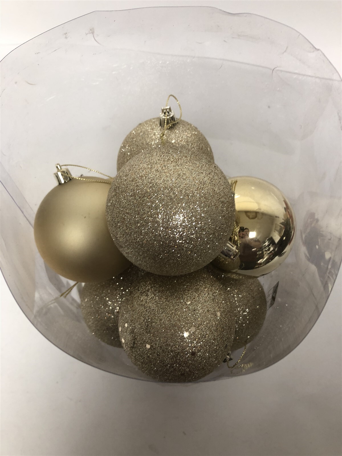 3" Champagne 4 Finish Ball Shiny, Matte, Glitter and Seqin Asst Seamless and Shatterproof 16/Clear Acetate Box