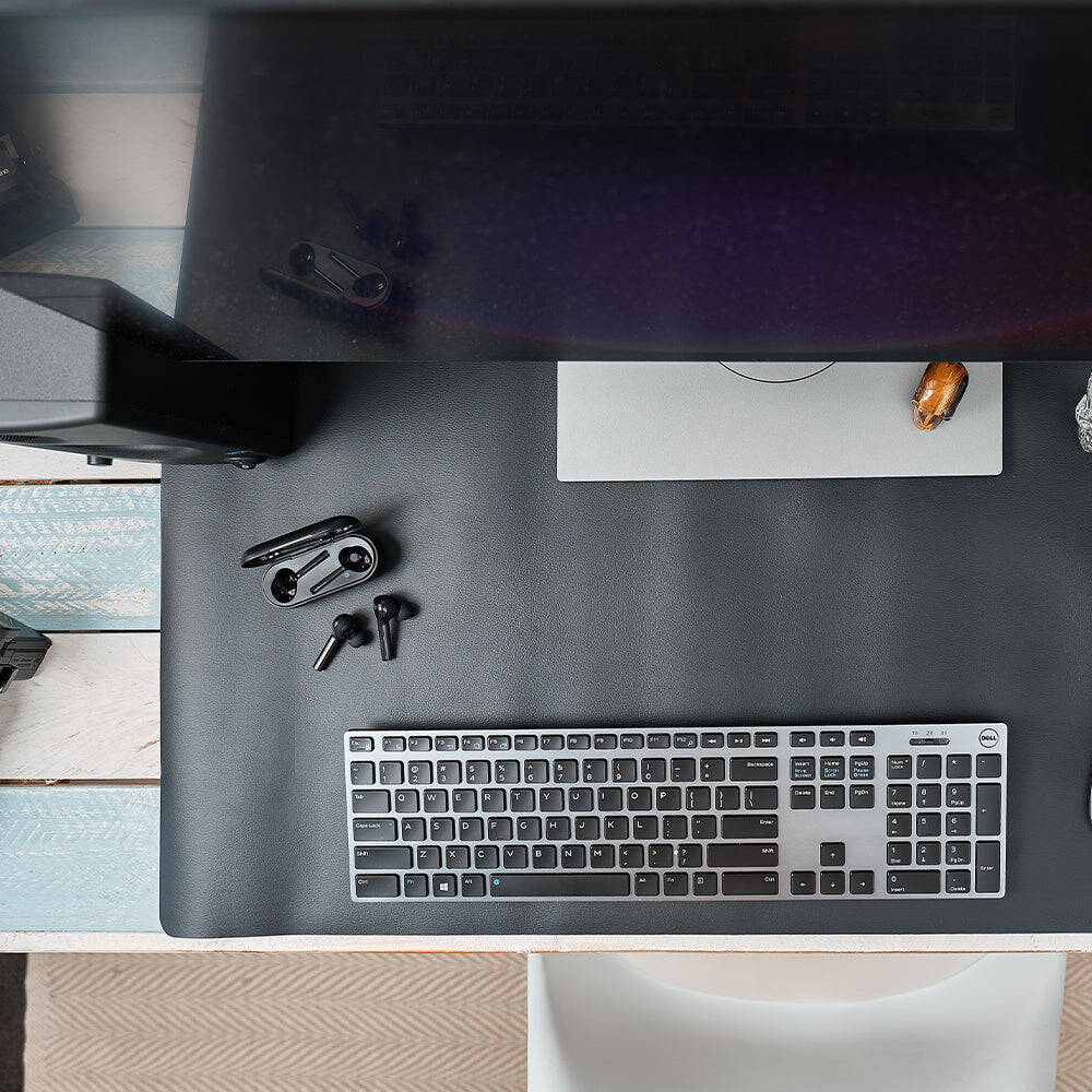 Help tidy your desk space with an extra large desk mat – place under your keyboard and mouse, to define your workspace and create a stylish work environment. Made from vegan leather, these mats wipe down easily to keep clean and eliminate the need for a separate mouse pad. You can also place your hot drink on the mat to protect your desk. Great for the home office or take to work! Size: 80cm x 40cm