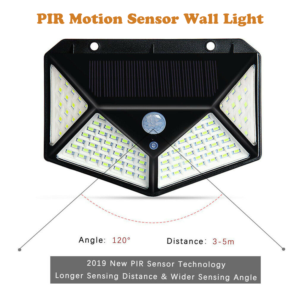 100LED solar waterproof four-sided human body induction wall light switch front setting is easier to operate, simple installation (only need 2 Screws can be fixed on the outdoor wall that can be sun-lit.