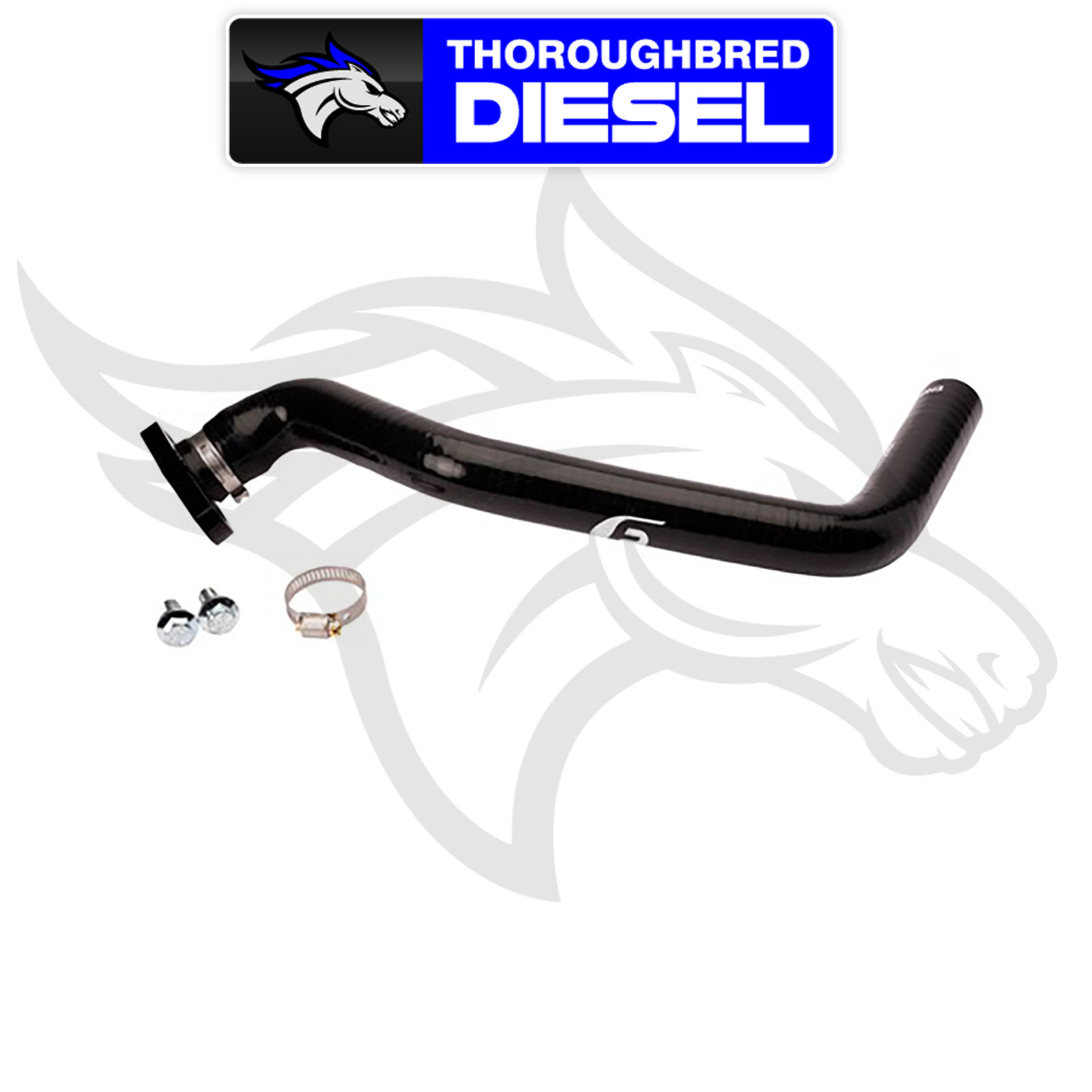 Eliminate the installation headaches associated with a non-flexible OE drain line with our silicone hose drain tube kit. This turbo drain kit is designed for use with all 12V/24V 5.9L Cummins equipped Dodge Ram factory HX35 and HY35 style turbochargers and aftermarket drop-in replacements like our Cheetah Series. Featuring a larger ID smooth silicone hose and black anodized billet aluminum fitting with integral O-ring, our patent pending drain hose simplifies turbocharger installation and will ensure proper oil drainage from your turbocharger.
