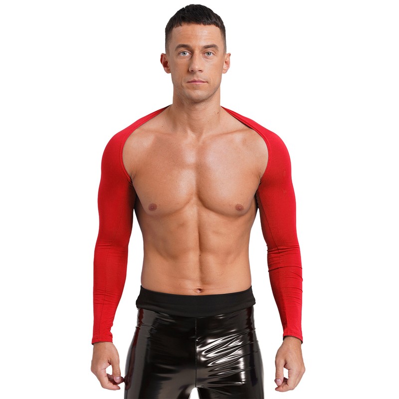 Men’s arm sleeve cardigan, cropped length, open front design allowing for easy wearing. Elastic fabric, one size fits for most.