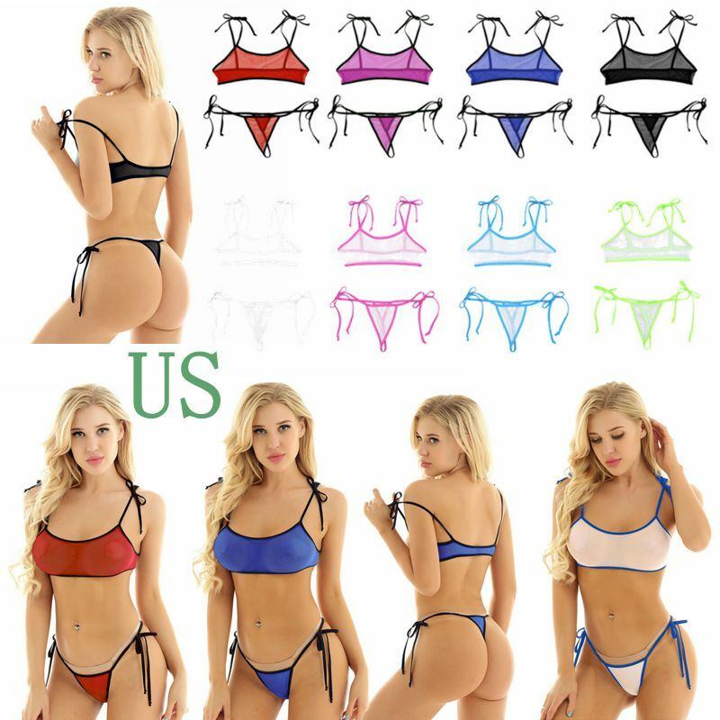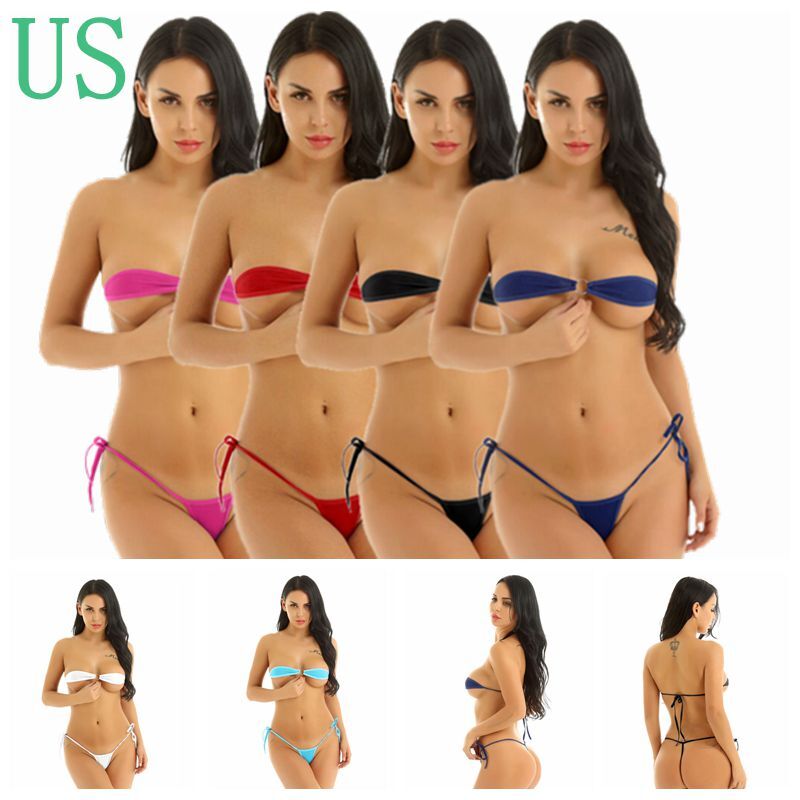 US Women Halter Micro Bikini Set Crochet G-string Lingerie Bathing Suit Swimwear
