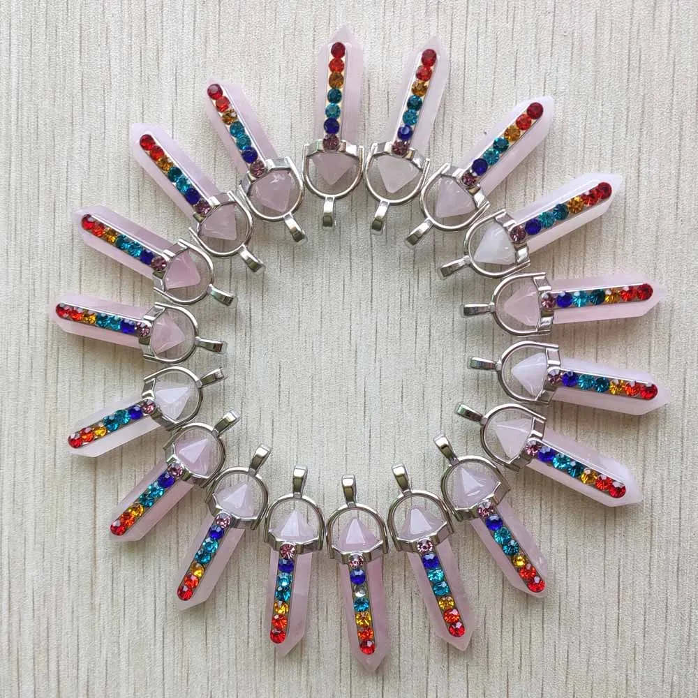 50pcs Natural Rose Quartz Stone Hexagonal Pointed 7 Color Reiki Chakra Pendant