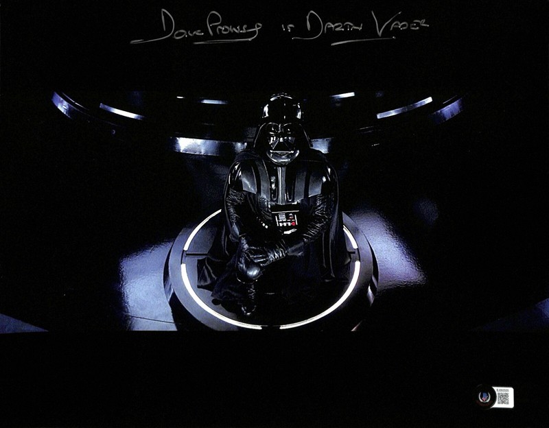 Autographed color photograph 11x14 signed in silver permanent marker by actor David Prowse (died 2020) and inscribed “Darth Vader”. From the Steve Grad Autograph Collection and obtained in person by Steve Grad at a private signing. The autograph has been certified by Beckett Authentication services #BJ093505