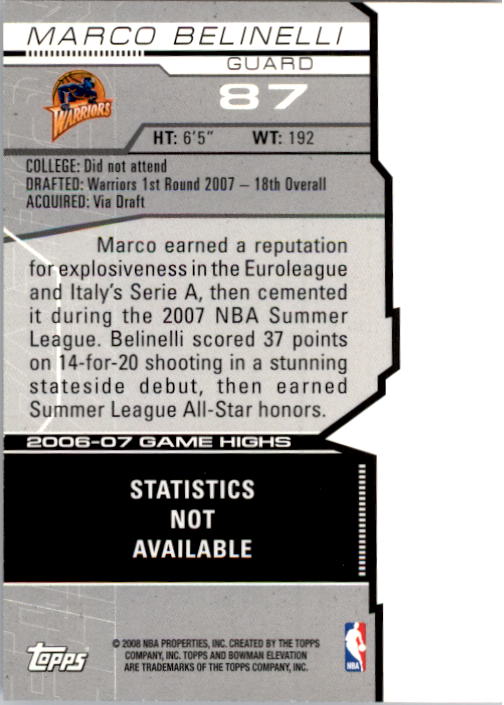 2007-08 Bowman Elevation Blue #87 Marco Belinelli /99 - NM-MT