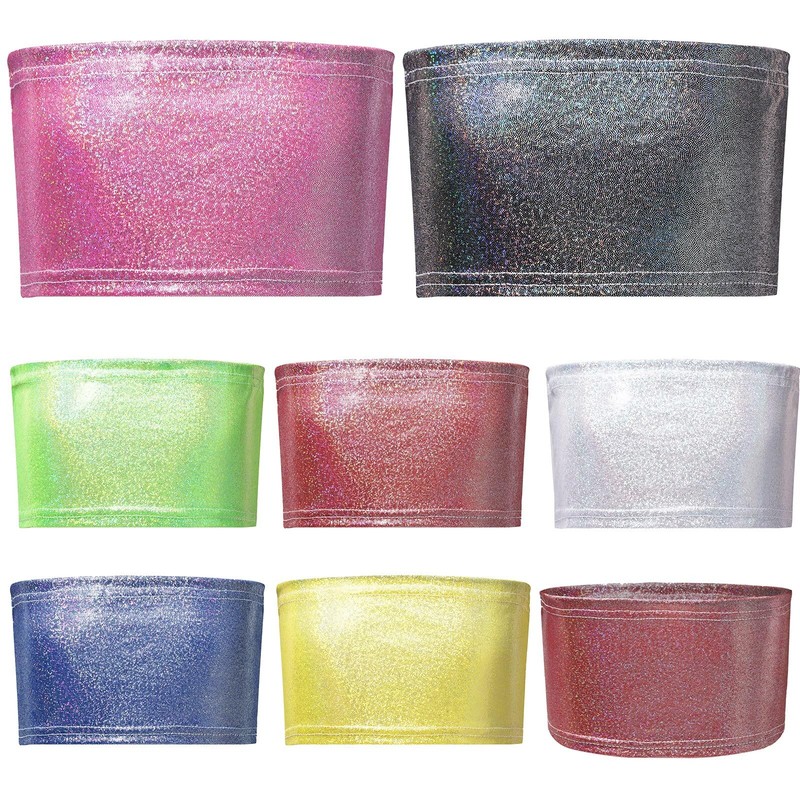 Girls Shiny Metallic Strapless Dance Tube Tops Stage Performance Cheer Leader