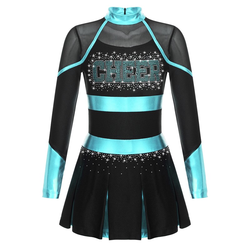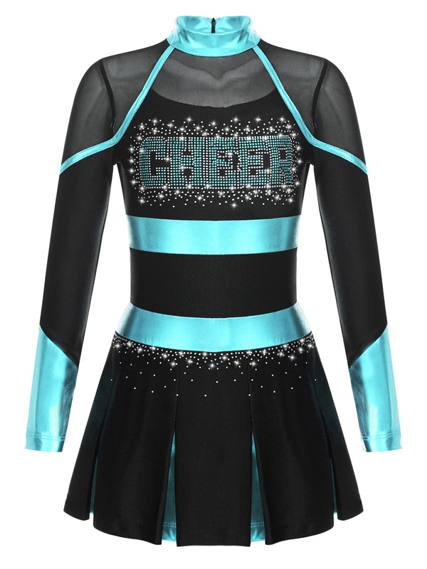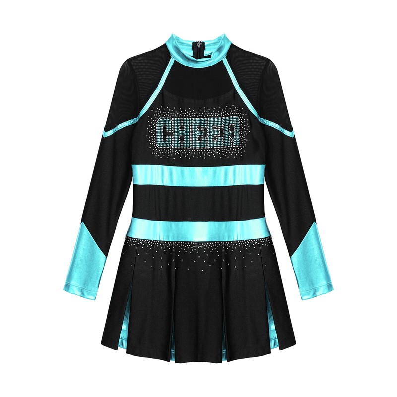 Girl’s cheerleading dance dress with glittery rhinestones letter pattern makes your child eye-catching in the crowd.