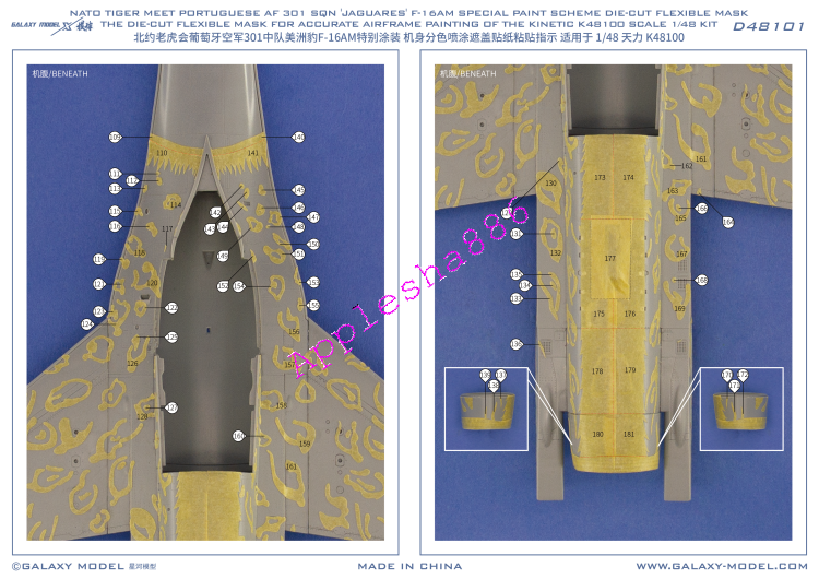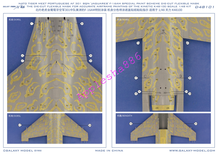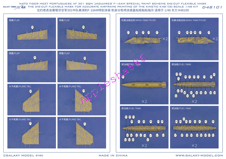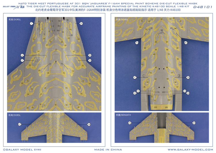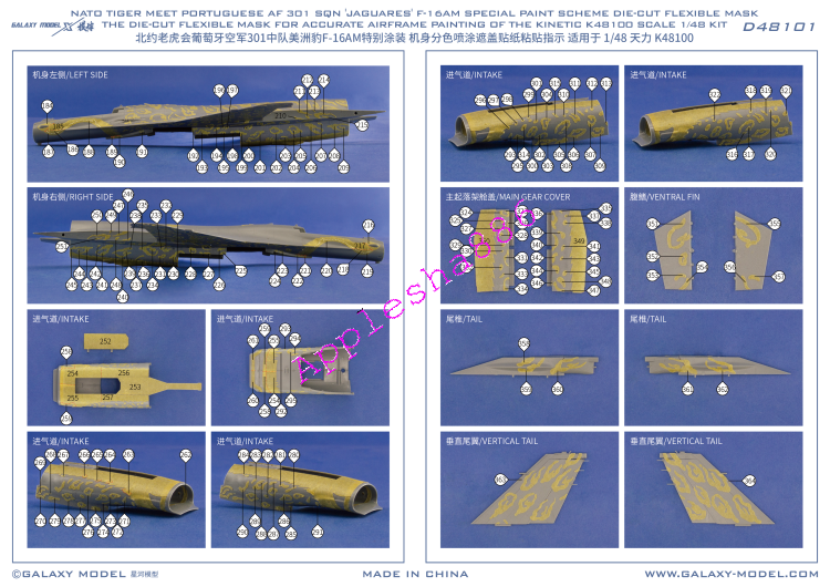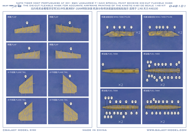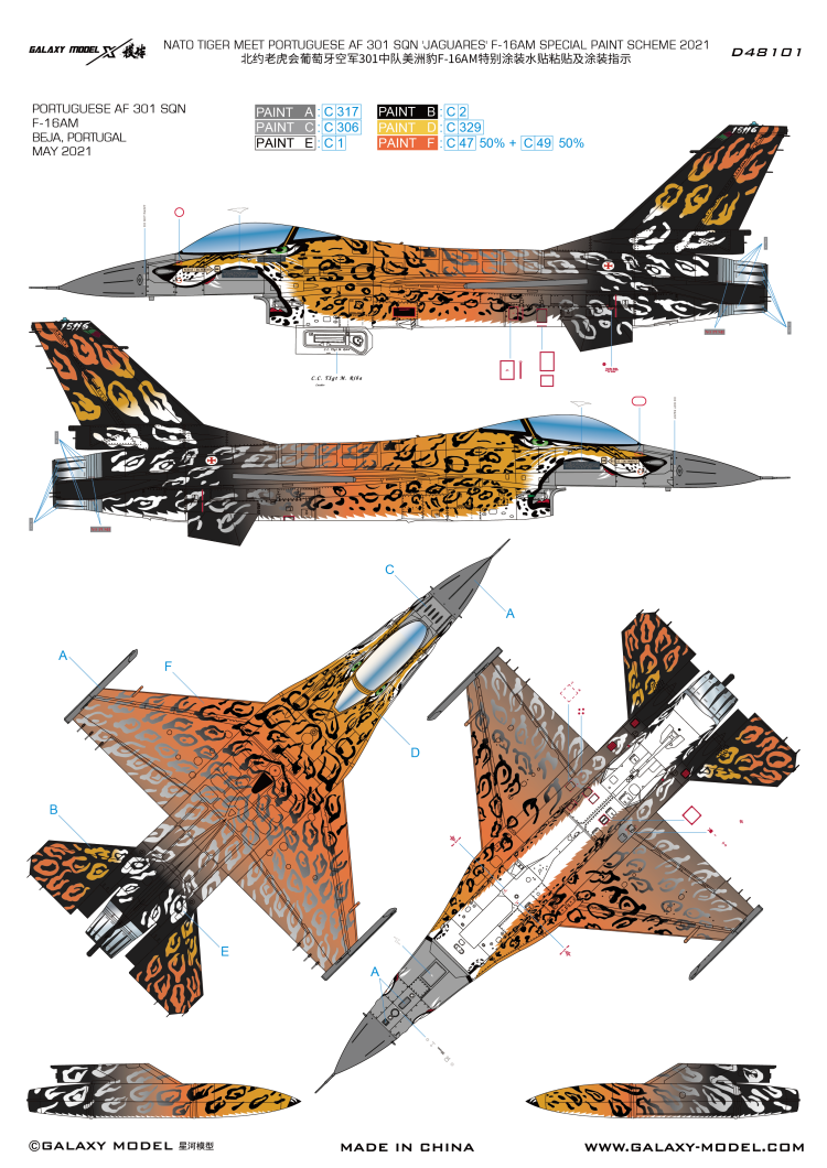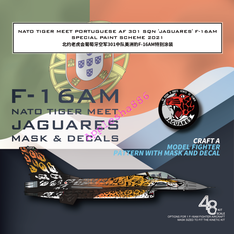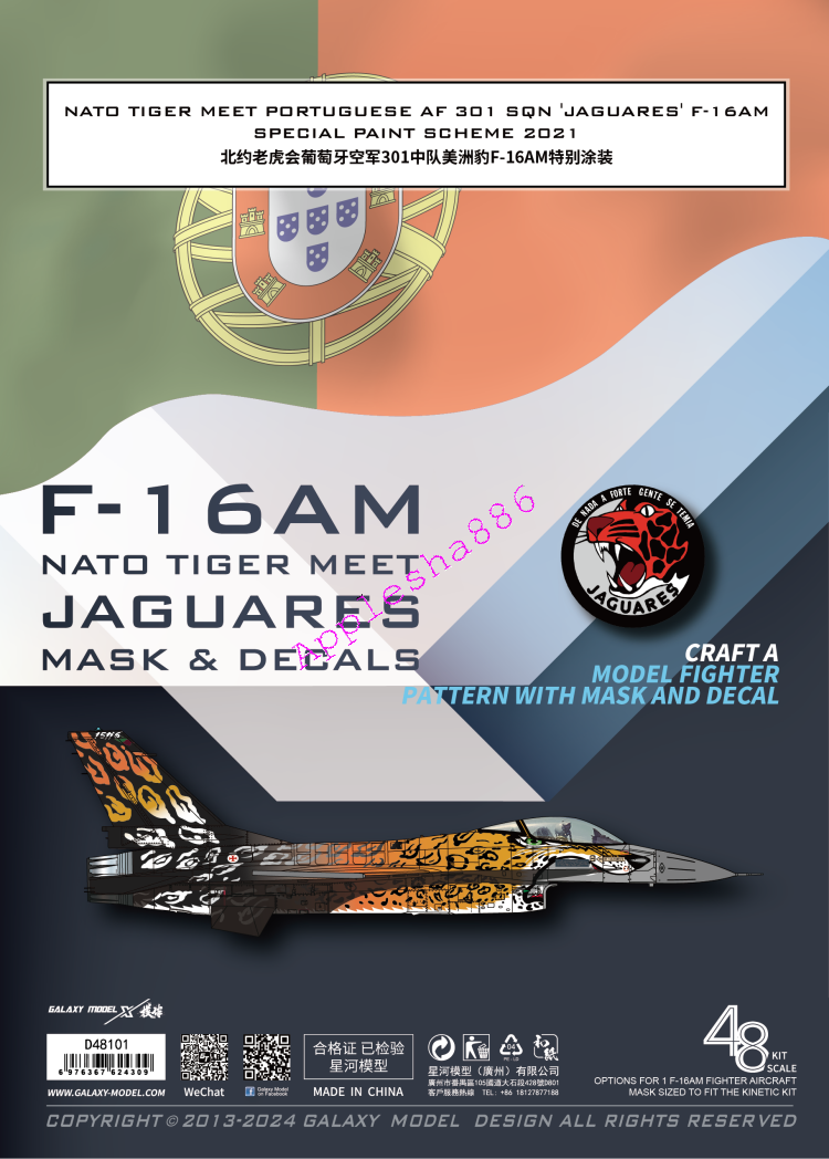 Galaxy D48101 1/48 "NATO Tiger Meet PORTUGUESE AF 301 SQN 'JAGUARES' F-16AM PAINTING FOR THE KINETIC K48100 "