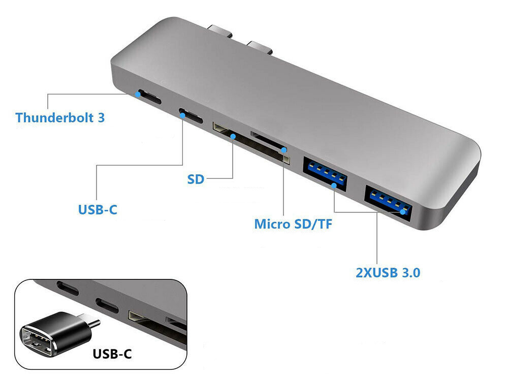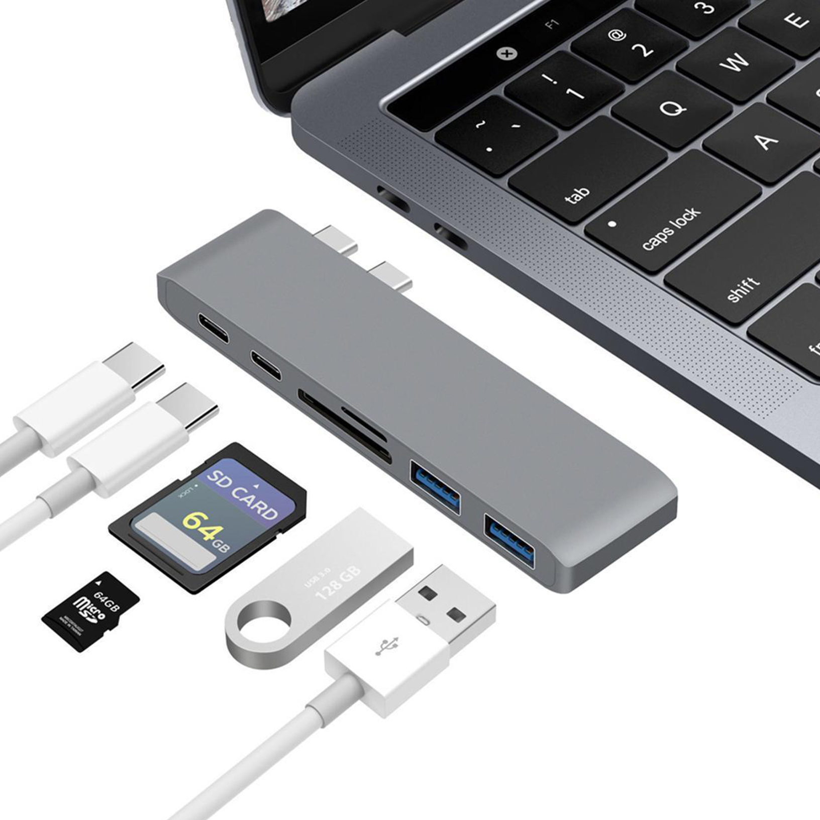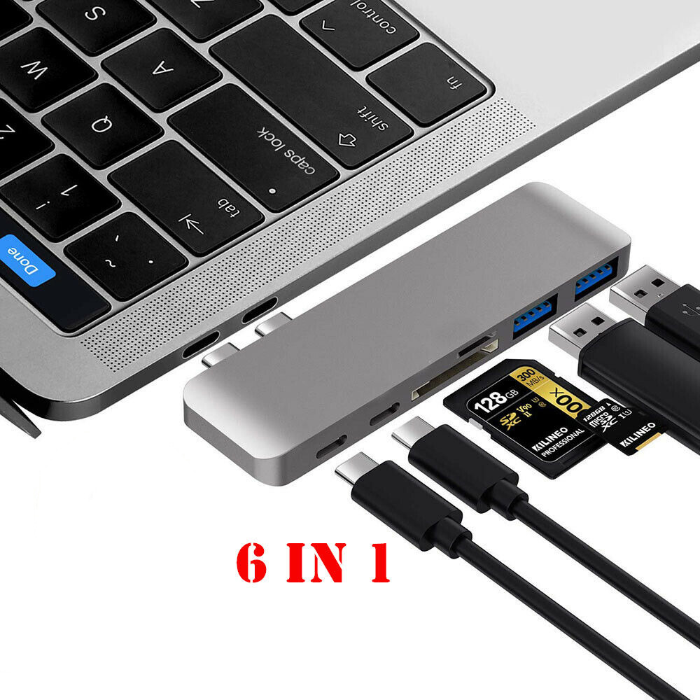 1x USB C Hub 6 in 1 für MacBook Pro Air Dual Typ C Adapter