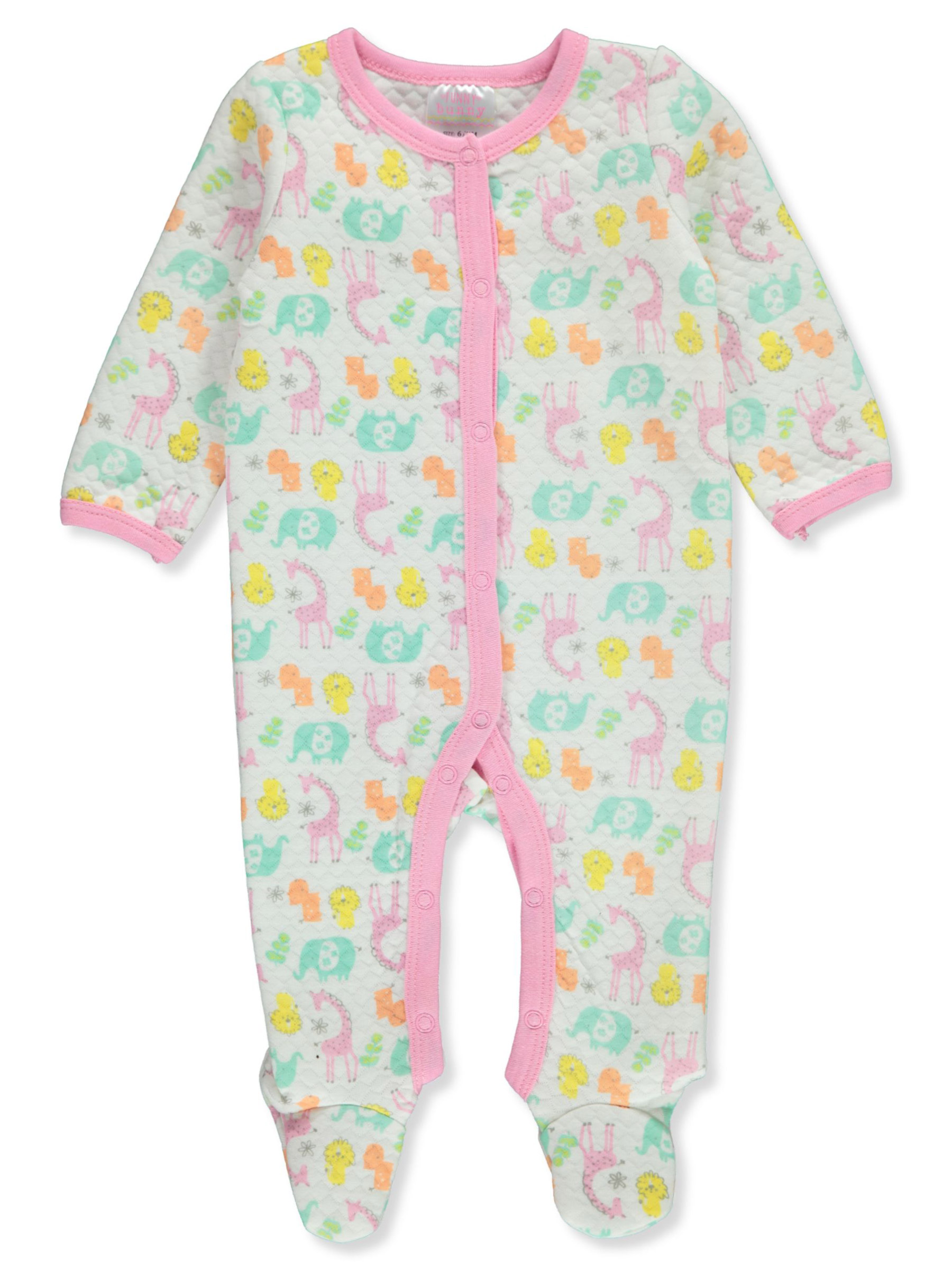 Funny Bunny Baby Girls' Quilted Footed Coveralls - pink/multi, 0 - 3 months