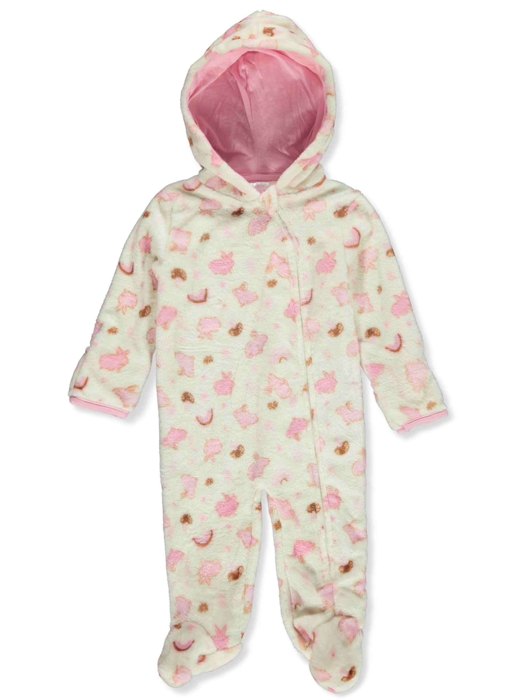 Funny Bunny Baby Girls' Fleece Hooded Coveralls - white/multi, 0 - 3 months
