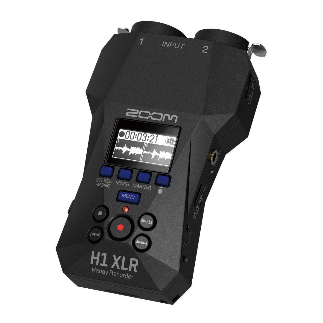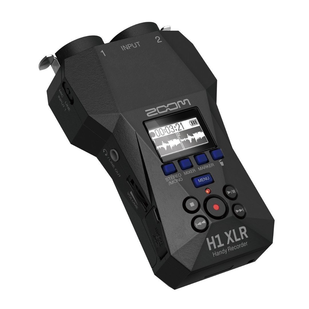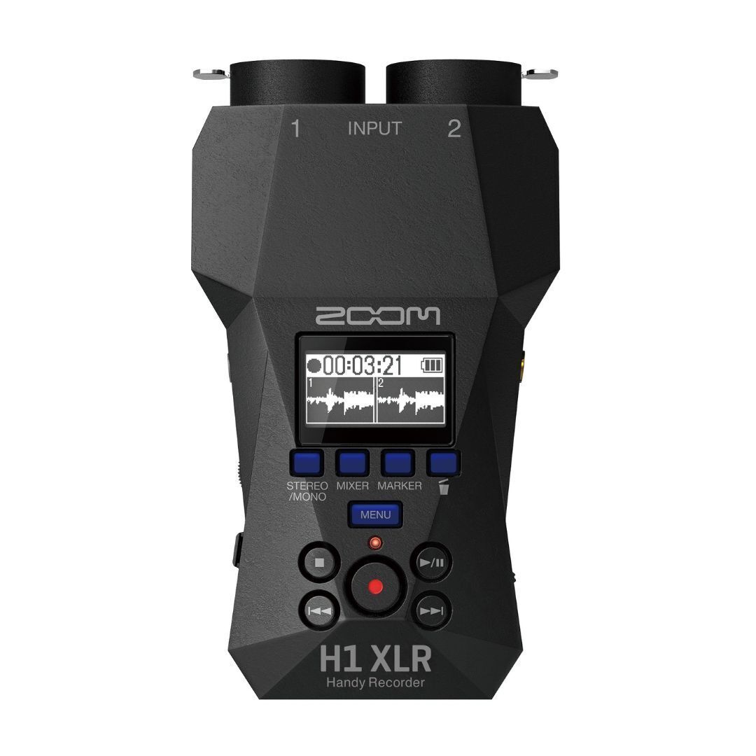 The Zoom H1 XLR Recorder in Black is designed for creators with no limitations. Record audio for videos, direct feeds from mixers, songwriting, and more. Equipped with two locking XLR and TRS combo inputs, the H1 XLR is ready to record microphones, stereo board feeds, instruments, and more. The 3.5mm stereo input allows you to record on-camera mics, lavalieres, phones, and other sources. Plug in, hit record, and capture your audio worry-free. With 32-bit float and dual AD converters, the H1 XLR's vast dynamic range preserved details in both quiet and loud recordings. The H1 XLR’s preamps give you crystal clear audio with a negative 122dB EIN and sample rates up to 96khz. Capture positive 4dBu professional line level signals to record clip-free audio from any mixer or line output.
