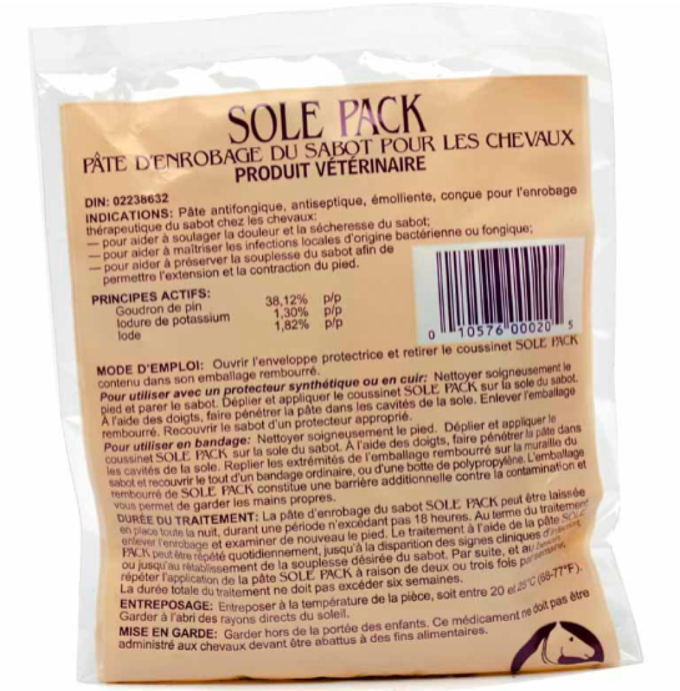 The Hawthorne Products Sole Pack Medicated Hoof Packing Paddie relieves dry, hard, sore hooves, while combating bacterial and fungal infections. It also treats white line disease. The hoof packing paste is extremely effective in maintaining the natural pliability of the hoof. The best hoof packing paste is fast-acting, quick-penetrating and formulated with soothing natural ingredients. The hoof conditioner paste is available as a convenient, easy-to-use individual "Paddie" and the more economical 4 lb. and 8 lb. bulk quantity. It's unique ability to bring the hoof back to a natural state makes it effective whether you're faced with a hoof that it too soft or a hoof that is too hard.Note: This product may require up to 2 additional days for order processing prior to shipping