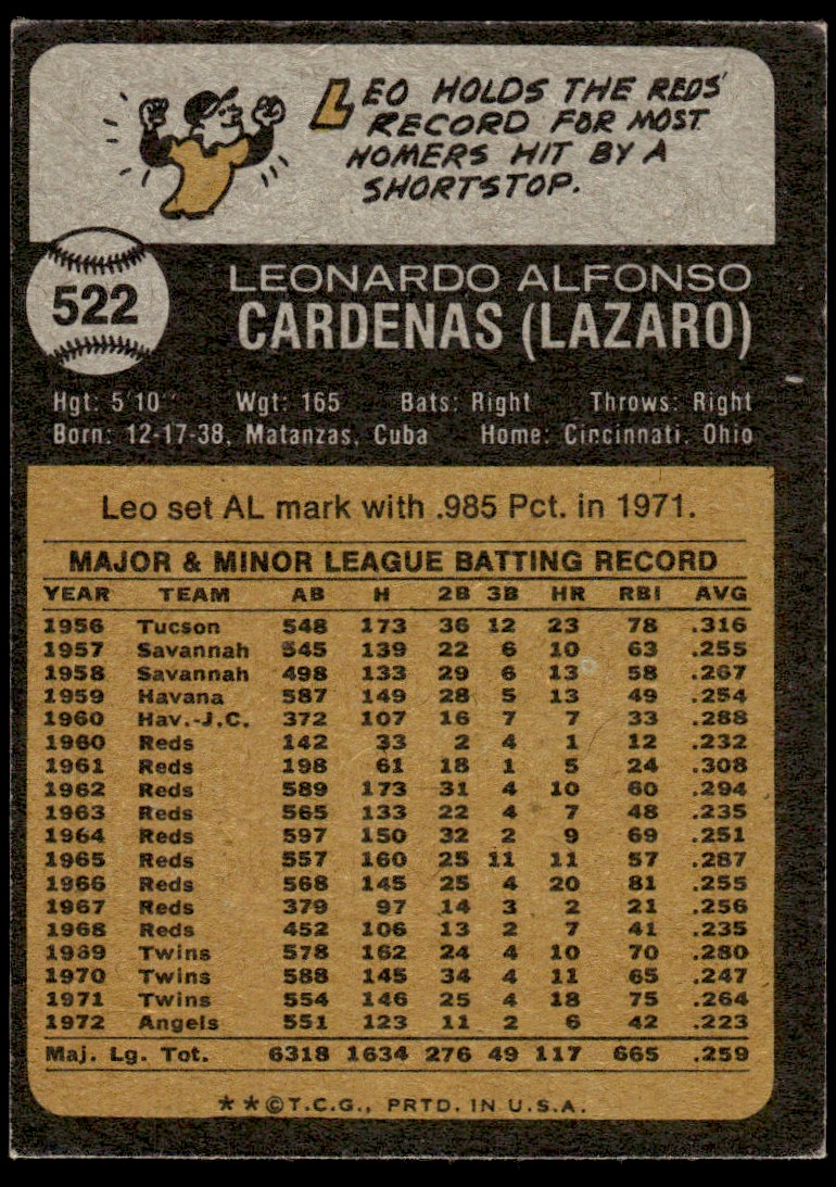 | 1973 Topps Leo Cardenas California Angels #522 |