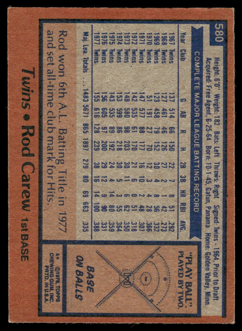 | 1978 Topps Rod Carew Minnesota Twins #580 |