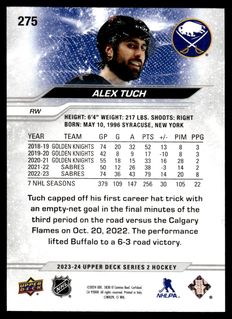 | 2023-24 Upper Deck Outburst Silver Alex Tuch Buffalo Sabres #275 |