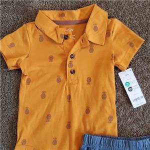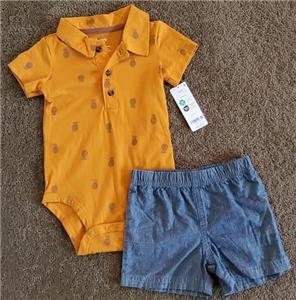 Baby Boys Carter's 2 piece PINEAPPLE Printed Polo Bodysuit & Shorts Set