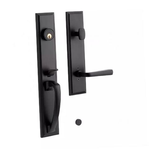 With its eye-catching hardware, the Aurick Solid Brass Entrance Door Set is just the Right accent for a contemporary or transitional space. The streamlined silhouette commands attention, while the easy-grip lever allows for easy opening and closing. Its sturdy brass build is rust-resistant and holds up well against the elements. Choose from a variety of stunning finishes to best suit your space. Mounting hardware is included for easy installation.