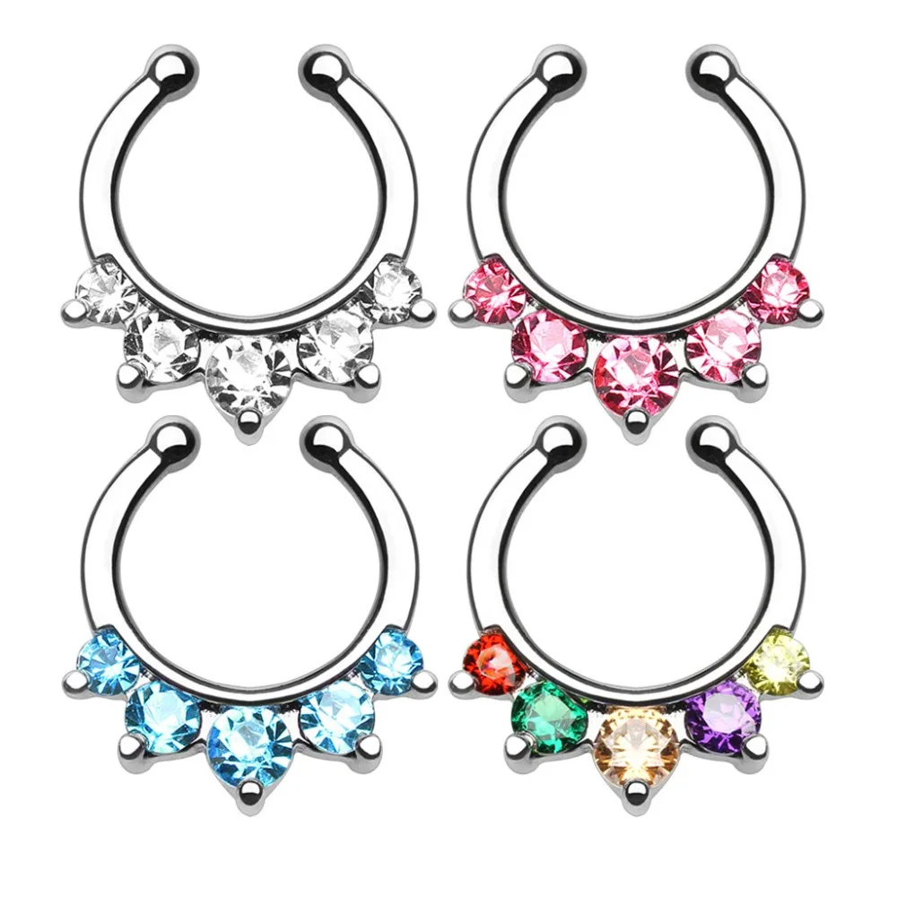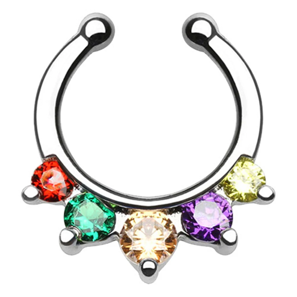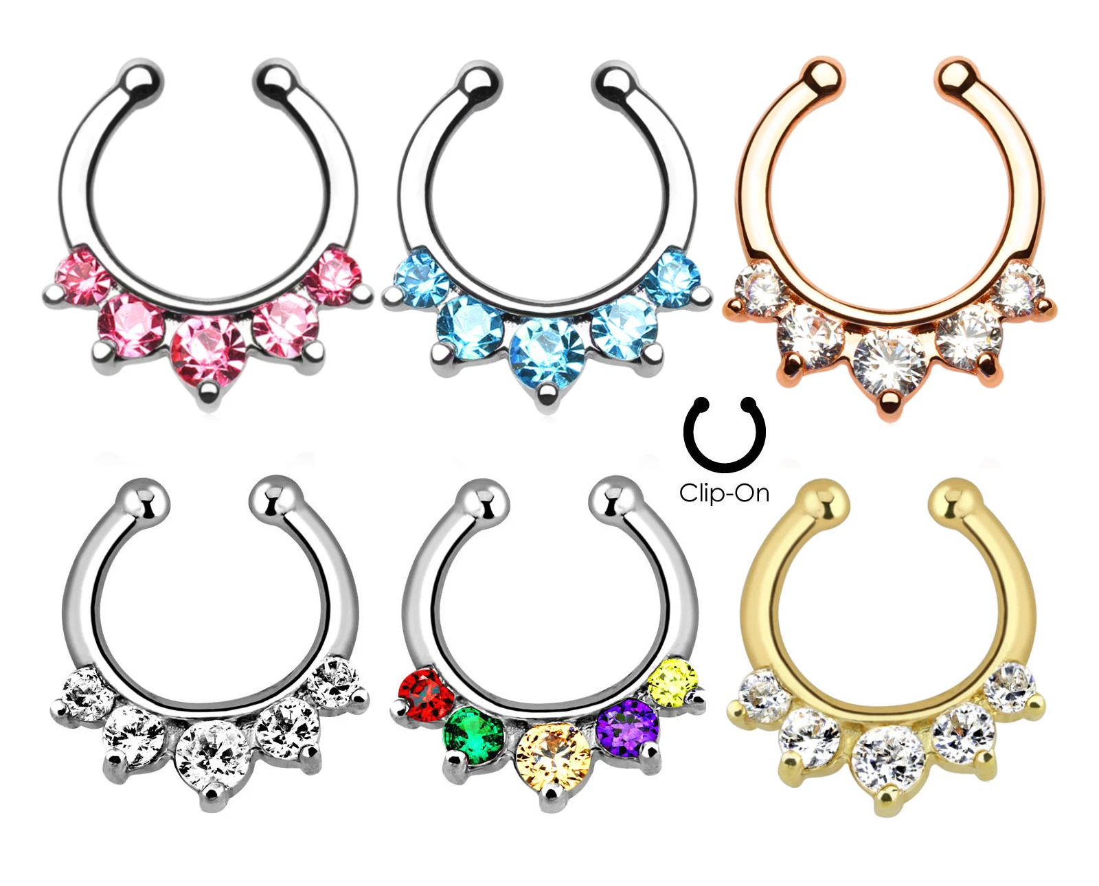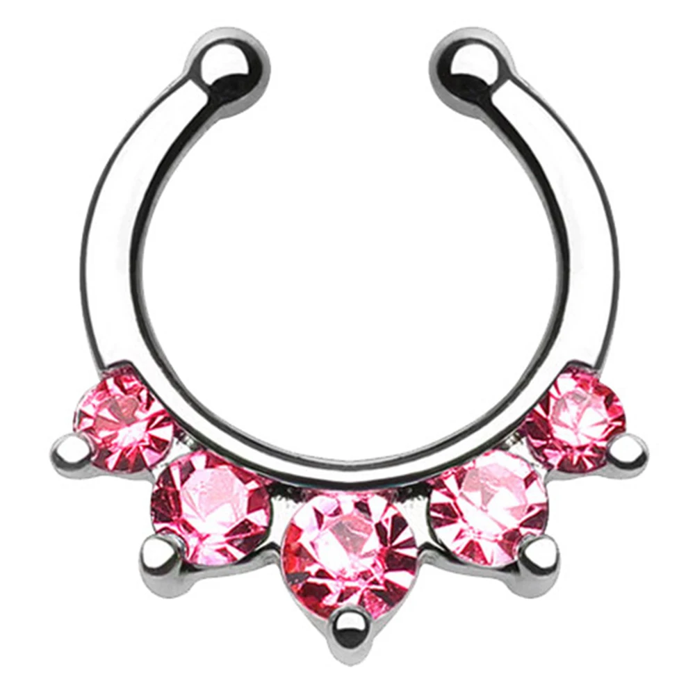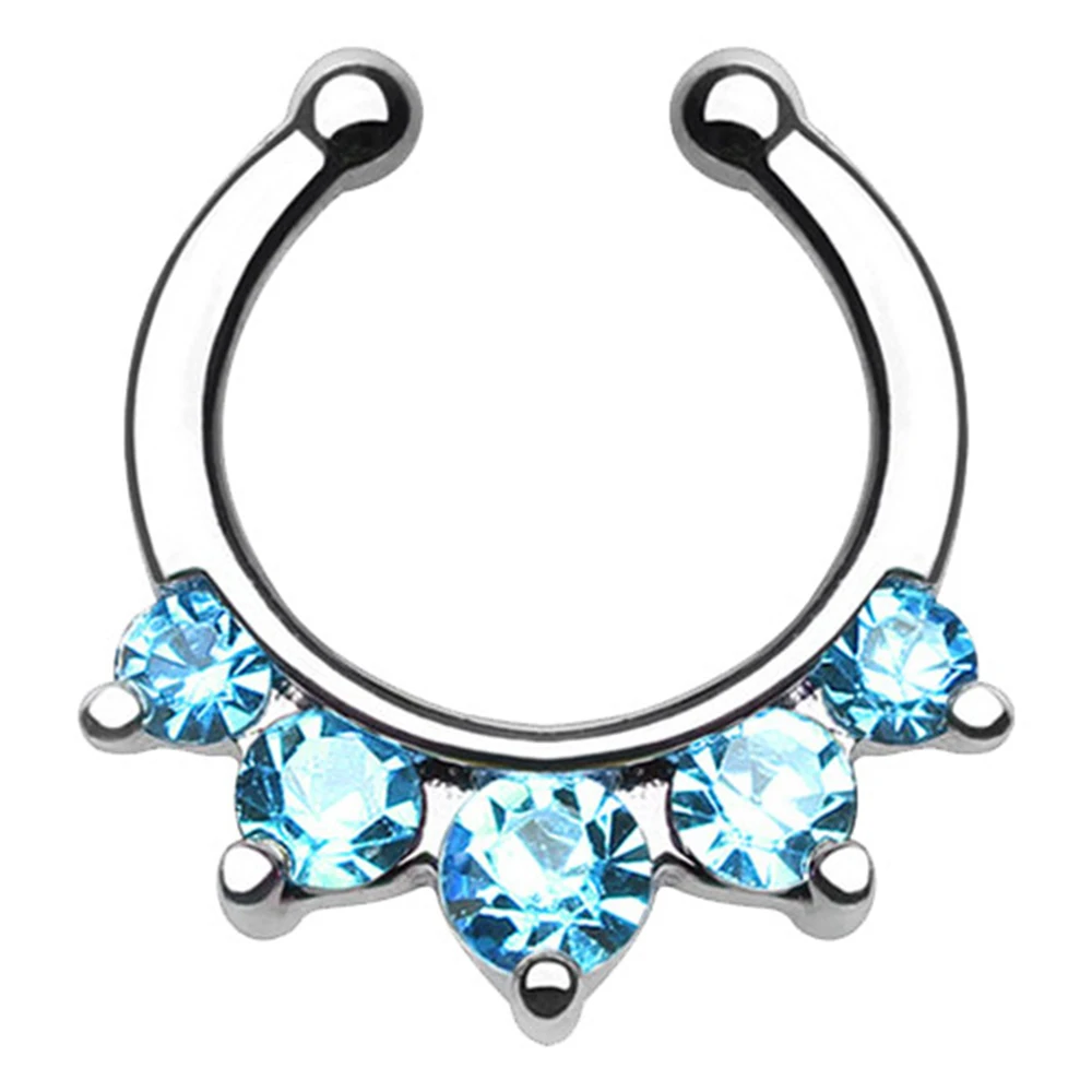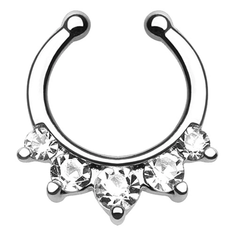 1pc Non-Piercing Five Paved Gems Septum Hanger Clip-On Fake Nose Ring Jewelry