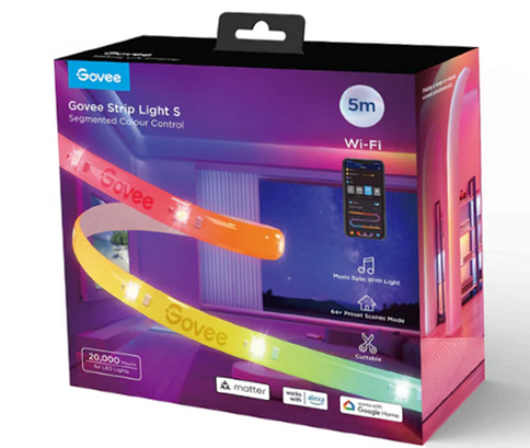 Govee RGBIC Wi-Fi + Bluetooth LED Strip Lights With Protective Coating with Matter (5M) Elevate your home lighting with the Govee RGBIC LED Strip Light. These smart LED strip lights offer vibrant, segmented colors and dynamic effects, adding a touch of elegance to any room. With Alexa and Google Assistant compatibility, you can easily control your lights with just your voice. Get creative with DIY options and sync your lights to your favorite music for a truly immersive experience.