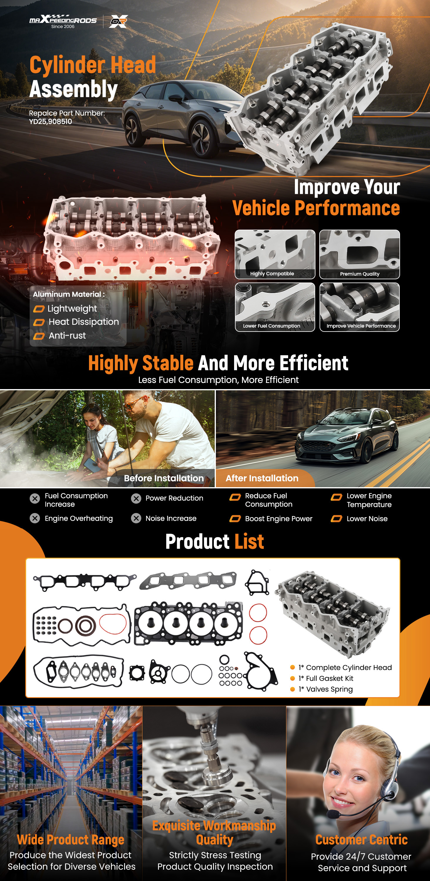 PRECISELY MATCHED----It adopts advanced casting skills to build a high strength and stiffed cylinder head assembly, with an accurate dimension to help you with a precise match to your cylinder.