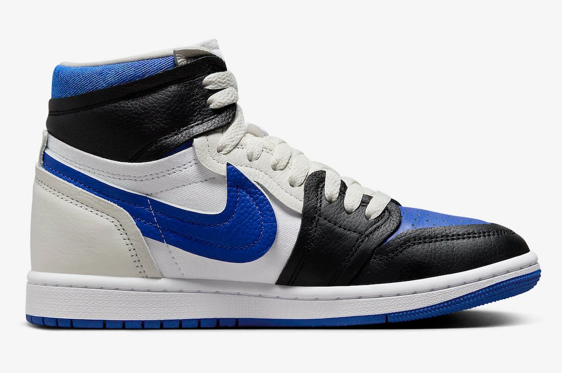 Der High-Top-Retro ist exklusiv für Damen und verleiht Michael Jordans ursprünglichem Signature-Modell eine experimentelle Verkleidung. Der Sneaker erinnert an Paare des verstorbenen Virgil Abloh und Teyana Taylor und verfügt über nicht-traditionelle Lederüberzüge des Air Jordan 1. Ein „Royal Toe“-Finish ist die neueste Option der Marke Jordan, wobei gewalktes Leder auf einer viel atmungsaktiveren Oberfläche erscheint. Viertelpaneele und Details entlang der Zunge sorgen für eine vergrößerte Bauweise, ebenso wie die Profil-Swooshes. Jeder Ledereinsatz auf dem Obermaterial verfügt außerdem über „unraffinierte“ Kanten, die dem Air Jordan für Damen eine „Do-it-yourself“-Ästhetik verleihen. Schaumstoffzungen sorgen zusammen mit Stoffkragen für mehr Komfort im Vergleich zur Standardkonstruktion der Silhouette. Unter den Füßen verfügt der Sneaker, der in einer neuen, mit Blueprint-Grafiken beladenen Box geliefert wird, über eine bewährte Sohleneinheit.