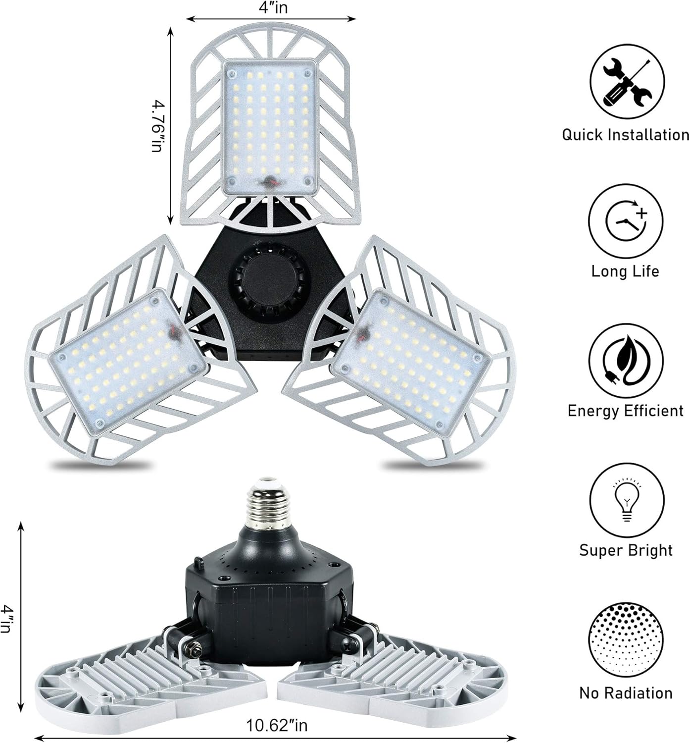 With less heat output due to the good heat dissipation structure, this garage light will not fade or damage your ceiling.