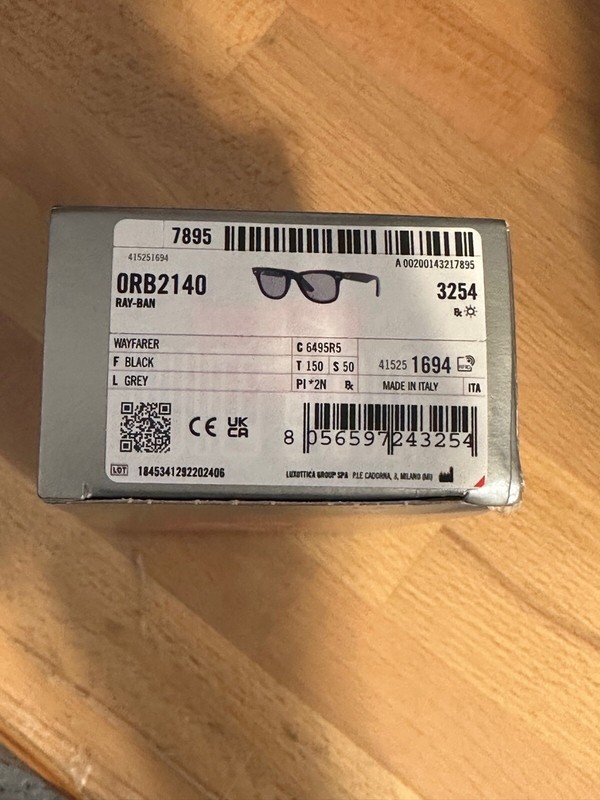 Ray-Ban RB2140 Sunglasses Unisex Wayfarer Black/Grey 50mm New & Authentic
