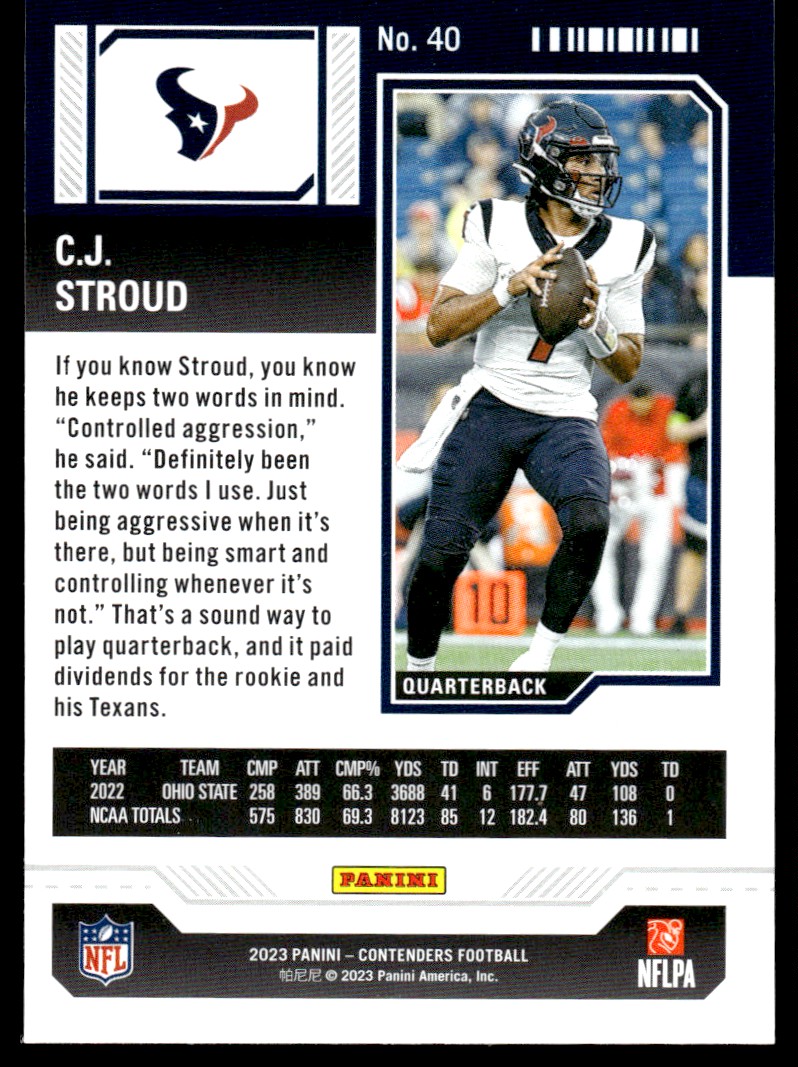 2023 Panini Contenders Season Ticket C.J. Stroud Rookie Houston Texans #40