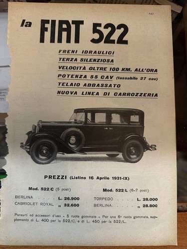FIAT 522 AUTO PUBBLICITà anni 30