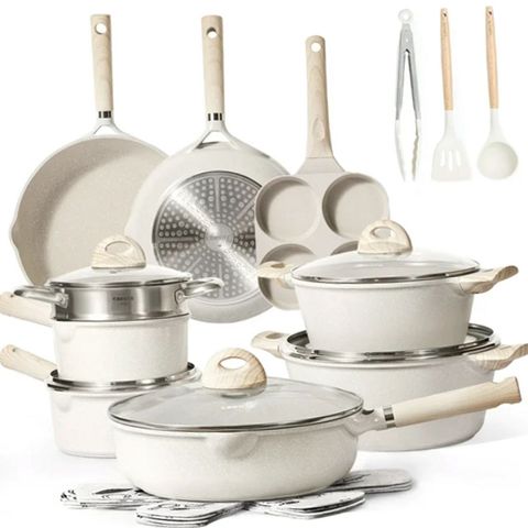 Carote Nonstick Pots and Pans Set, 21 Pcs Non Stick Cookware Set, Induction Stone Cookware Kitchen Cooking Set (Beige Granite)