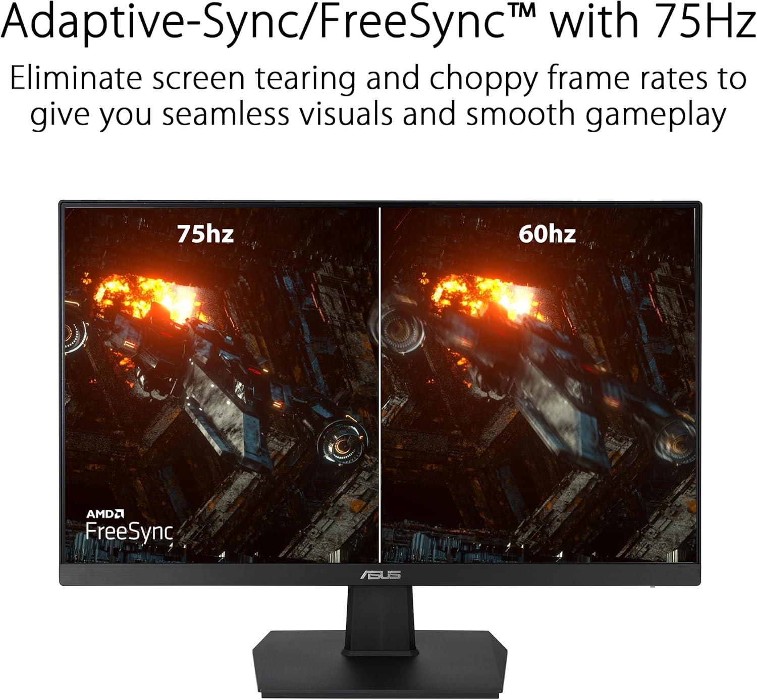 Experience the ultimate in visual clarity with the ASUS VA24EHE monitor. Designed to deliver stunning, vibrant visuals, this 23.8-inch Full HD IPS display boasts a 75Hz refresh rate and a 178° wide viewing angle for crystal clear images from any perspective.