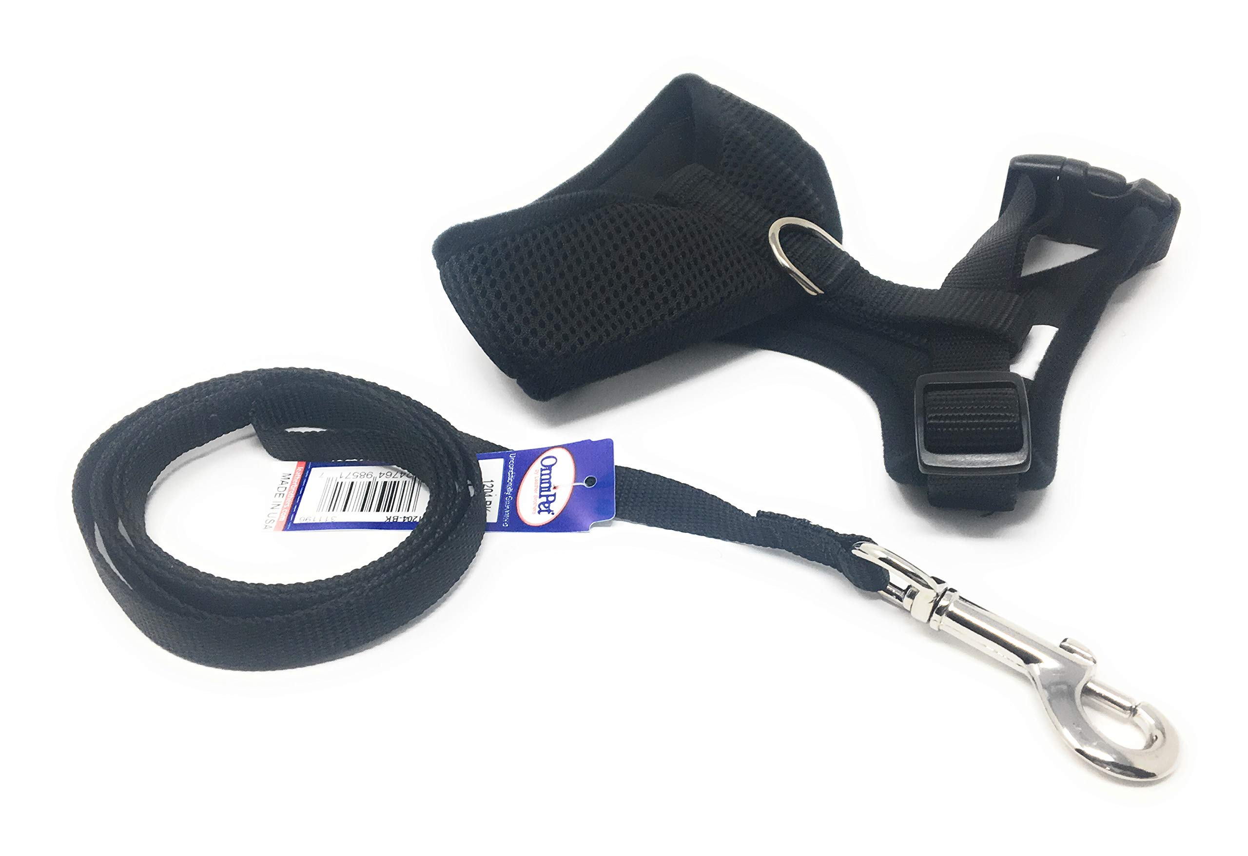 Breezy Mesh Harness Plus Leash Dog Gift Set- 5 Dog Sizes (Medium, Black)