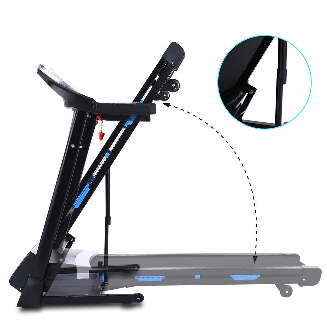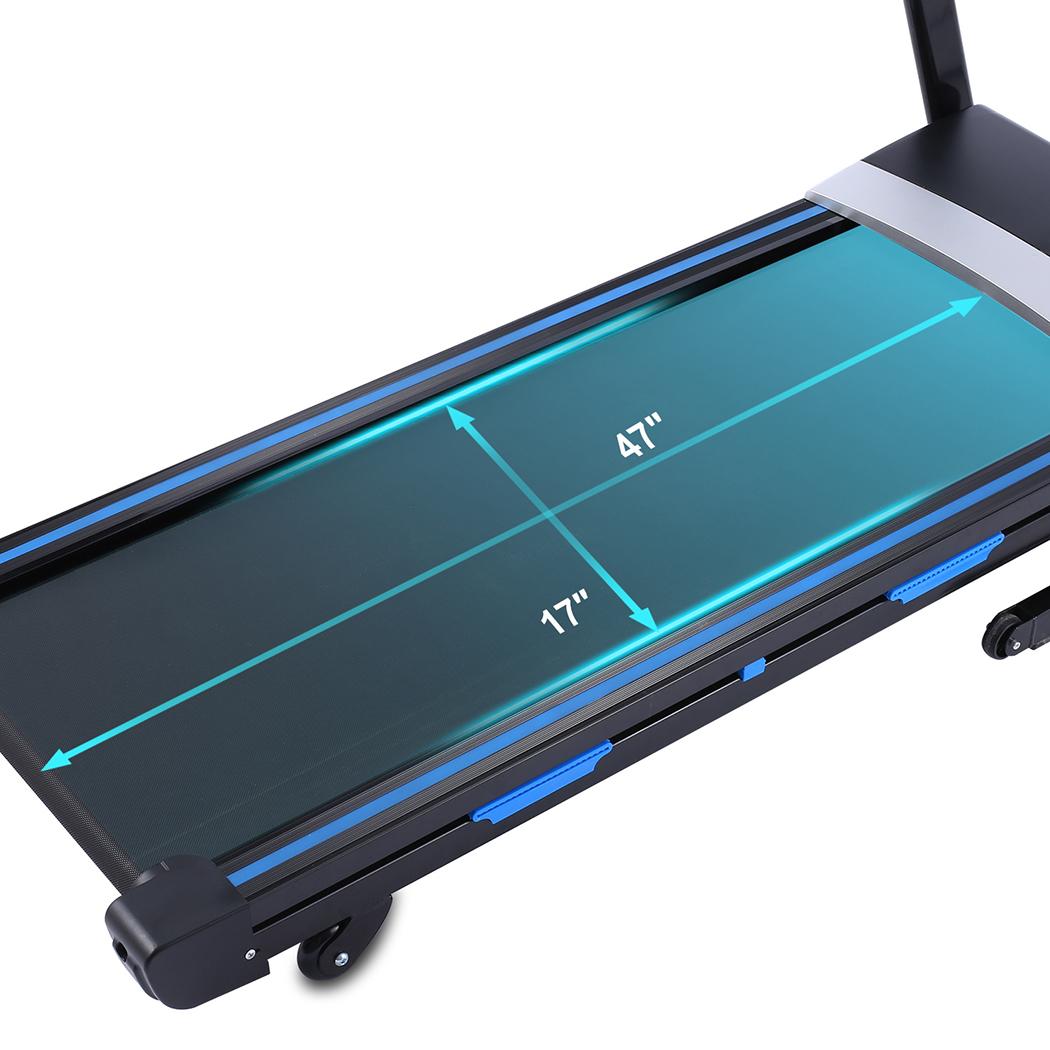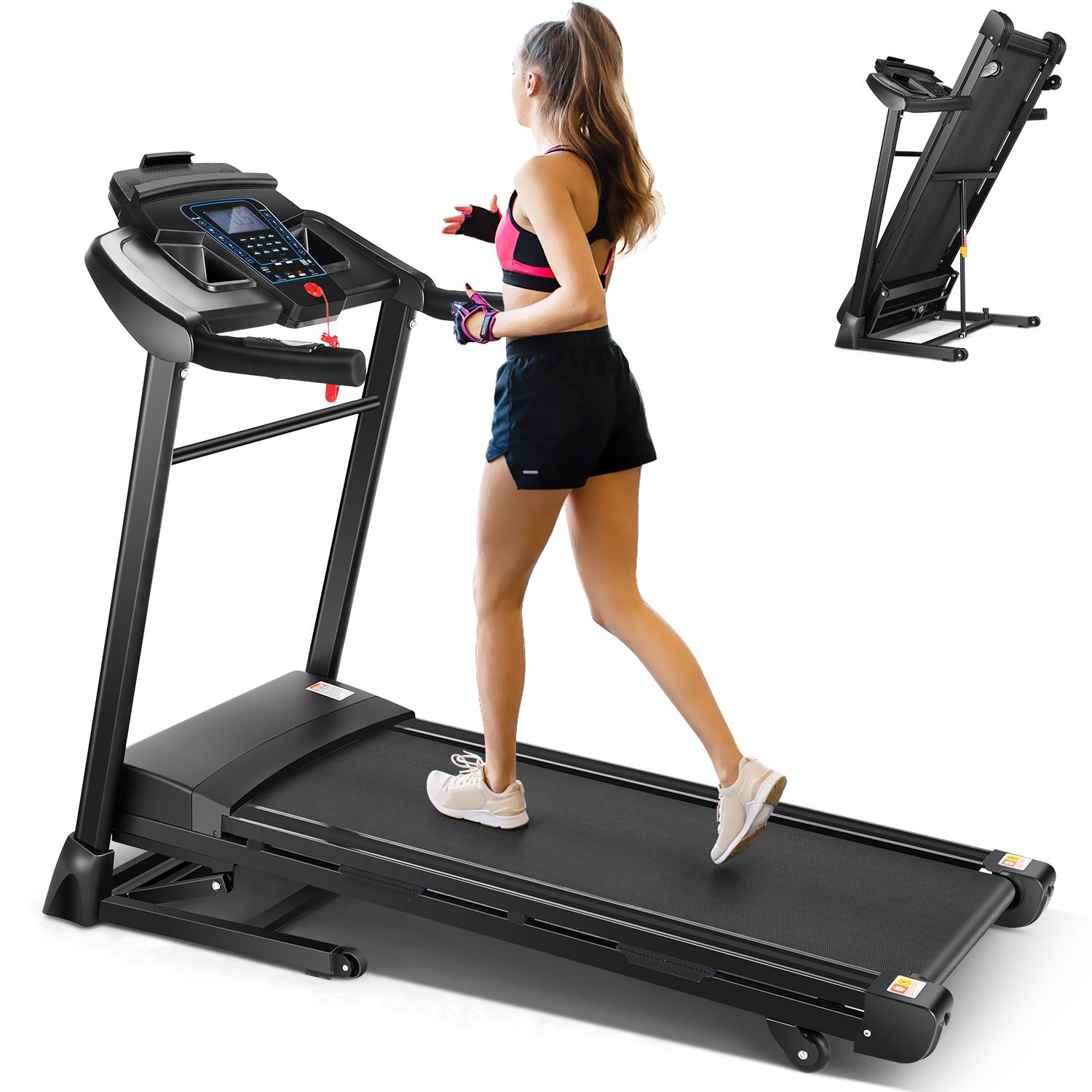 Folding Treadmill Electric 3.25HP Power Running Fitness Jogging Incline Machine About this item- ⭐【Efficient 3.25HP Motor & 15% Auto Incline】This electric treadmill is designed for professional training. Silent & efficient 3.25 Hp bursts for quick speed & incline increases. Automatic drive recalibration with every step for smooth pace & responsive programs. Speeds up to 9MPH + 15% gradient hill climb. To help you reach your fitness goal you can plug your mobile phone into the integrated speakers and blast out your favorite motivational tracks.
