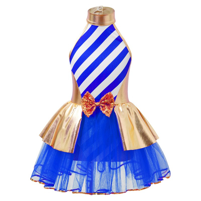 Girls Christmas striped tutu dress bodysuit for xmas parties dancing skating stage performance.