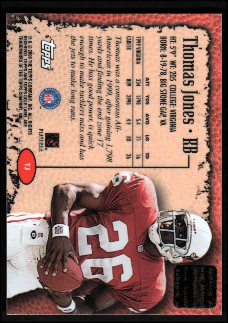 2000 Topps Gold Label Rookie Autographs #TJ Thomas Jones Auto CARDINALS - NM-MT