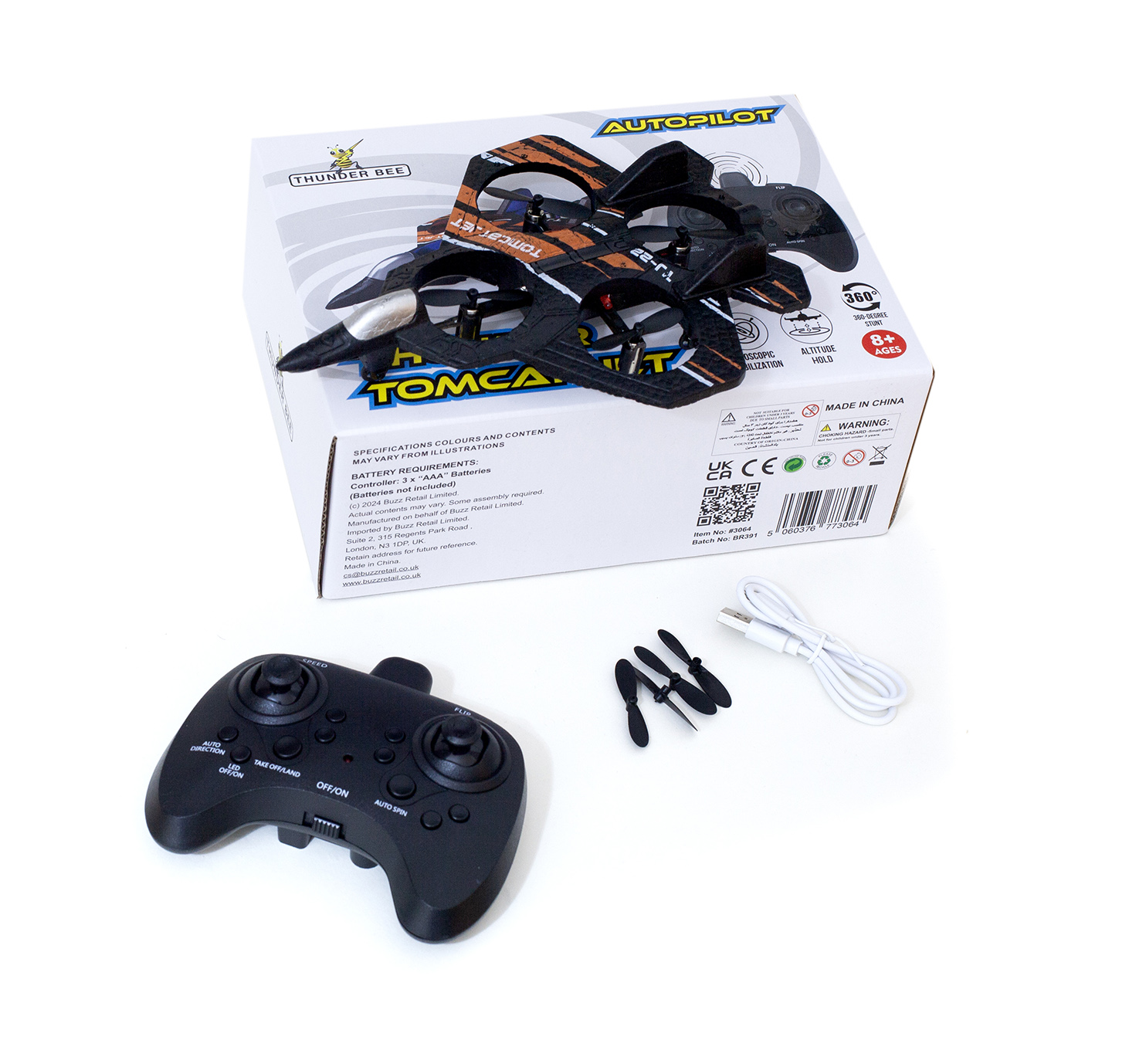 One of the most exciting aspects of the Thunder Tomcat Jet is its 360-degree stunt feature. With just a push of a button, the jet can perform impressive flips and rolls, adding a thrilling, action-packed element to each flight. It’s a toy that lets kids and adults alike feel the thrill of commanding a high-flying stunt plane. The 2.4 GHz remote control offers a reliable, interference-free connection, ensuring responsive handling from a distance. Built with a lightweight foam body, the Thunder Tomcat Jet is both durable and gentle, ideal for safe indoor flights and outdoor play alike. Its small size and sturdy construction make it the perfect companion for high-energy play sessions, anytime and anywhere!