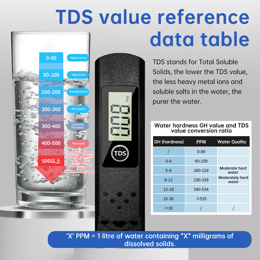 TDS Meter Digital Water Tester 0-9990ppm Drinking Water Quality Analyzer Monitor