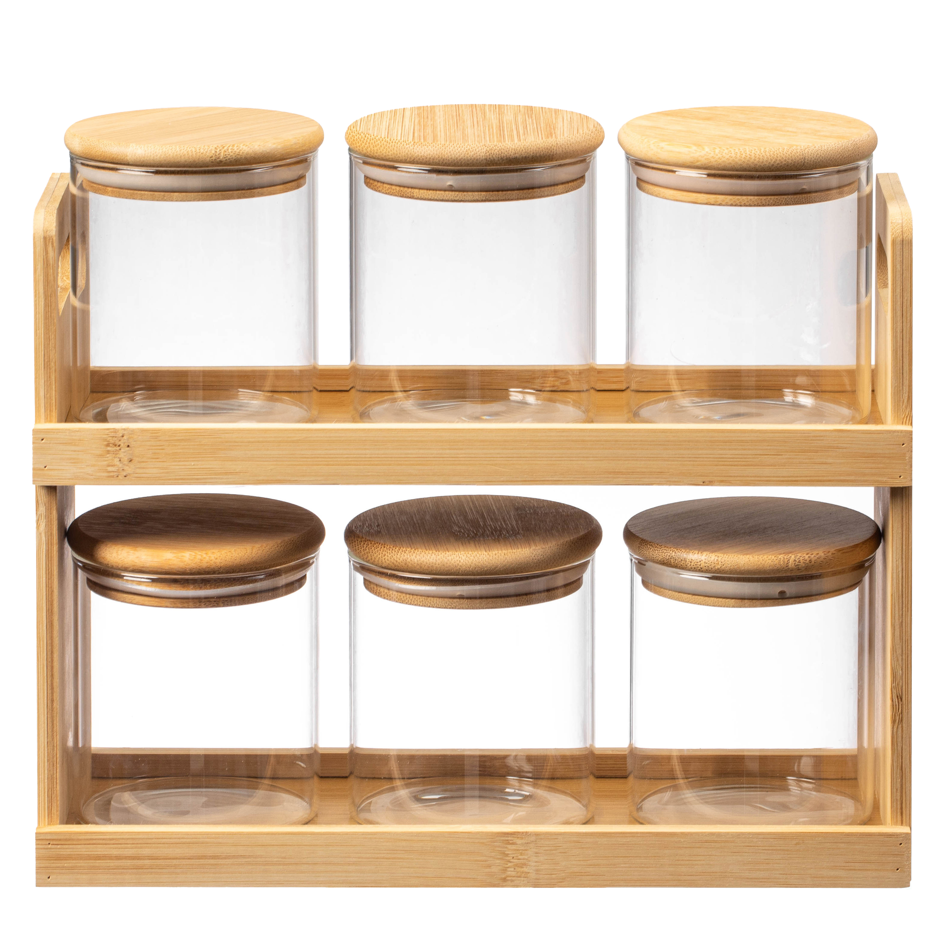 Featuring a practical design and accompanied by airtight-lid glass jars, these pantry organizers and bamboo spice racks provide ample space for organizing a wide range of seasonings, condiments, herbs, snacks, and cooking ingredients. Their dual tiers ensure that you can neatly arrange your spice jars and easily access your favorites without the hassle of digging through cluttered cabinets. This thoughtful design streamlines meal preparation by offering quick and effortless access to your essential flavors. These wooden spice rack organizers are elegant additions to any kitchen, perfect for passionate cooks and those who value an organized space. Their natural wood finish brings warmth and sophistication to your decor and seamlessly complements various interior styles. The compact size is ideal for maximizing countertops or storage shelves, making them an efficient choice for any room. In addition to their aesthetic appeal, the racks’ smooth surfaces are easy to clean and maintain, ensuring that your storage solutions remain hygienic and attractive. The airtight-lid glass jars are designed to keep your spices fresh, preventing contamination and preserving their quality. Whether you're using them to display your favorite seasonings or store your favorite snacks, these racks combine functionality with style, enhancing both your organizational efforts and your home's visual charm.
