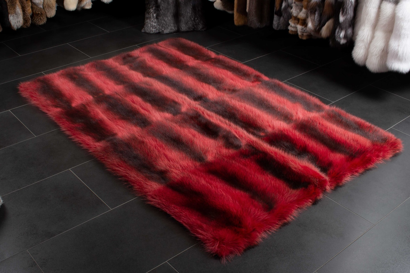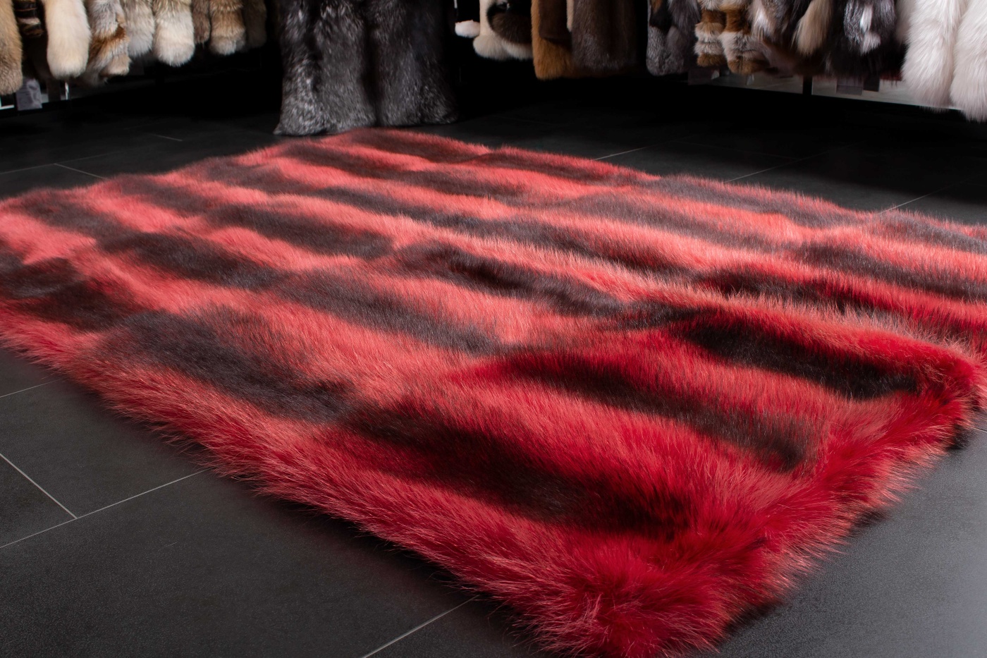 Kanadischer Waschbär Fellteppich in Rot - Wildware