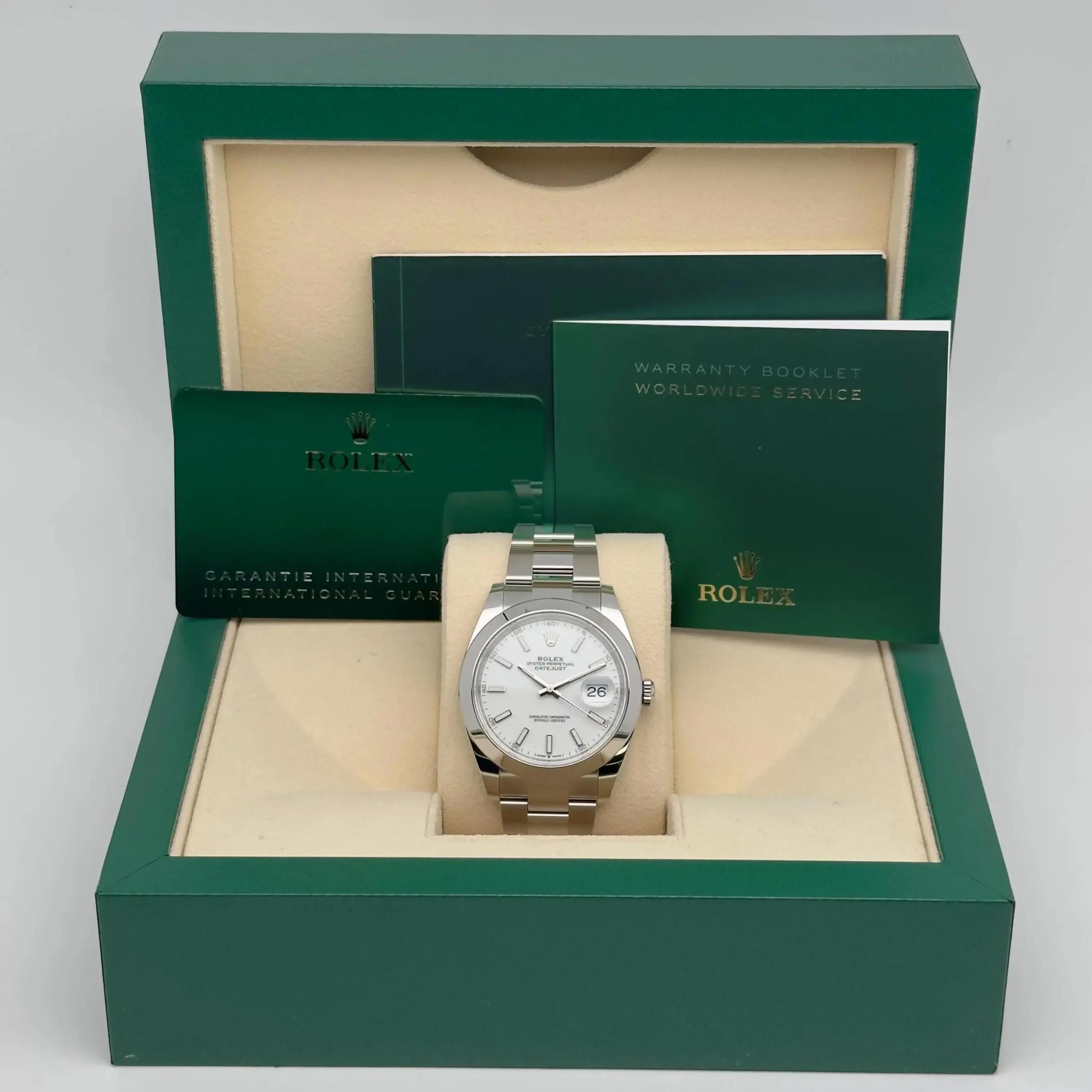 Rolex Datejust 126300 41 Steel White Index Dial Automatic Watch B&P